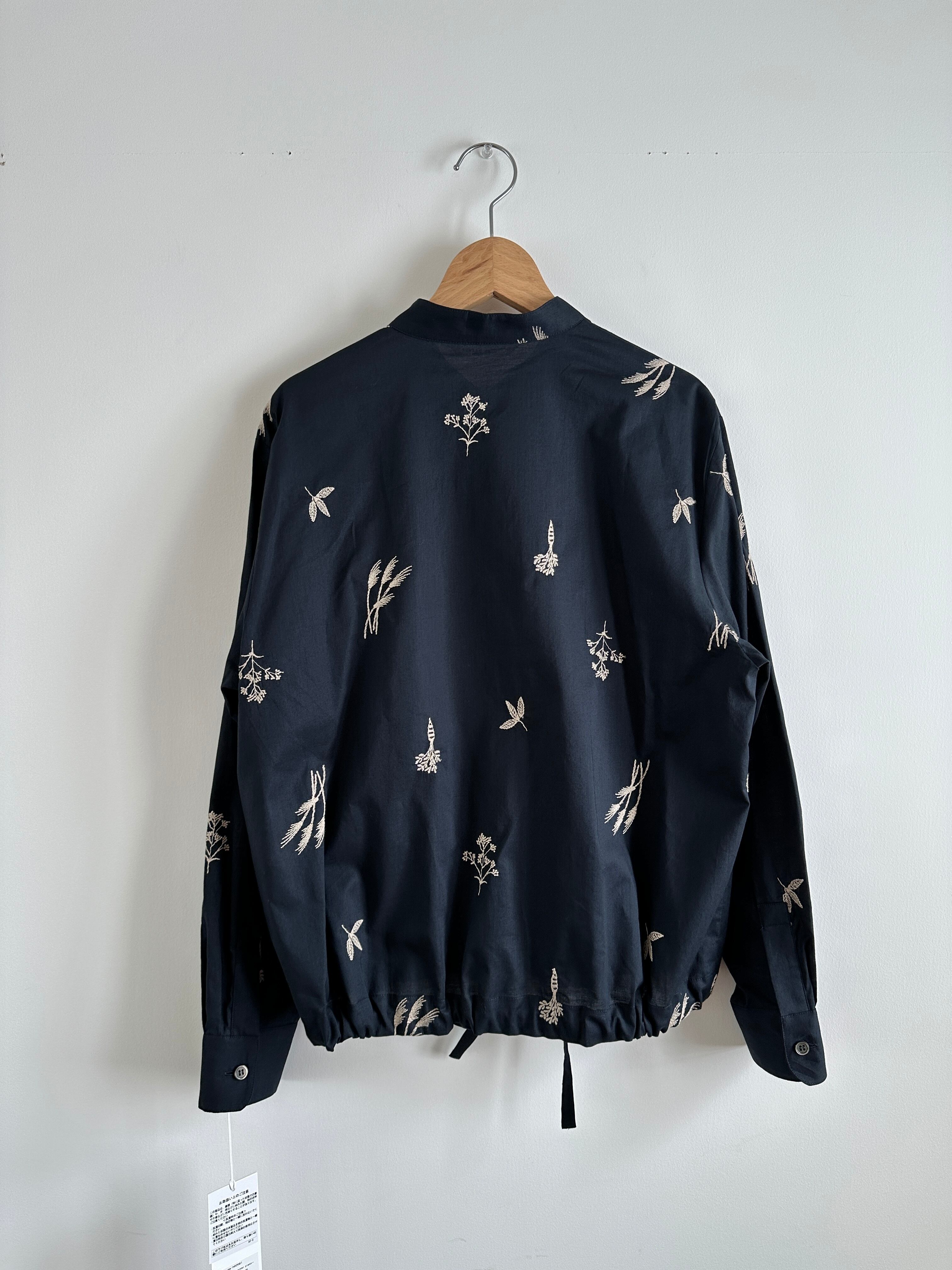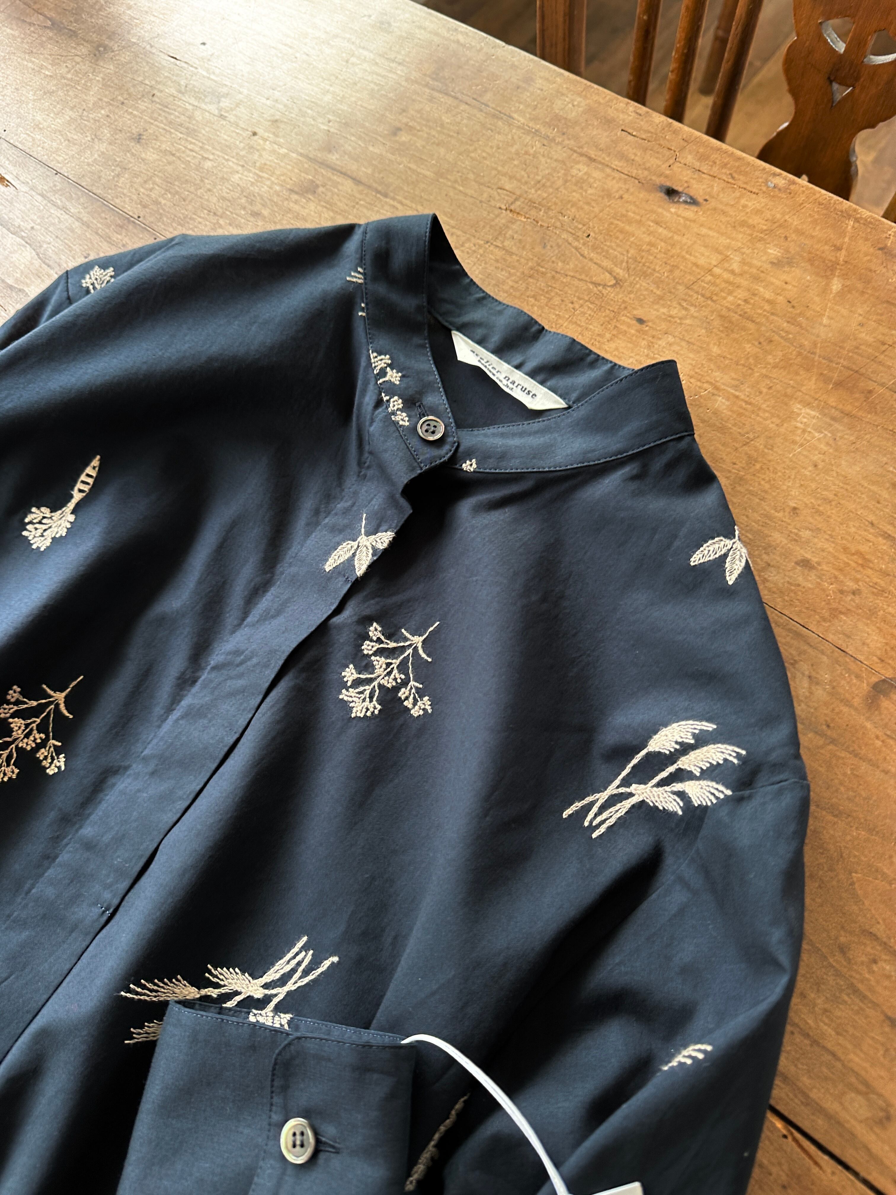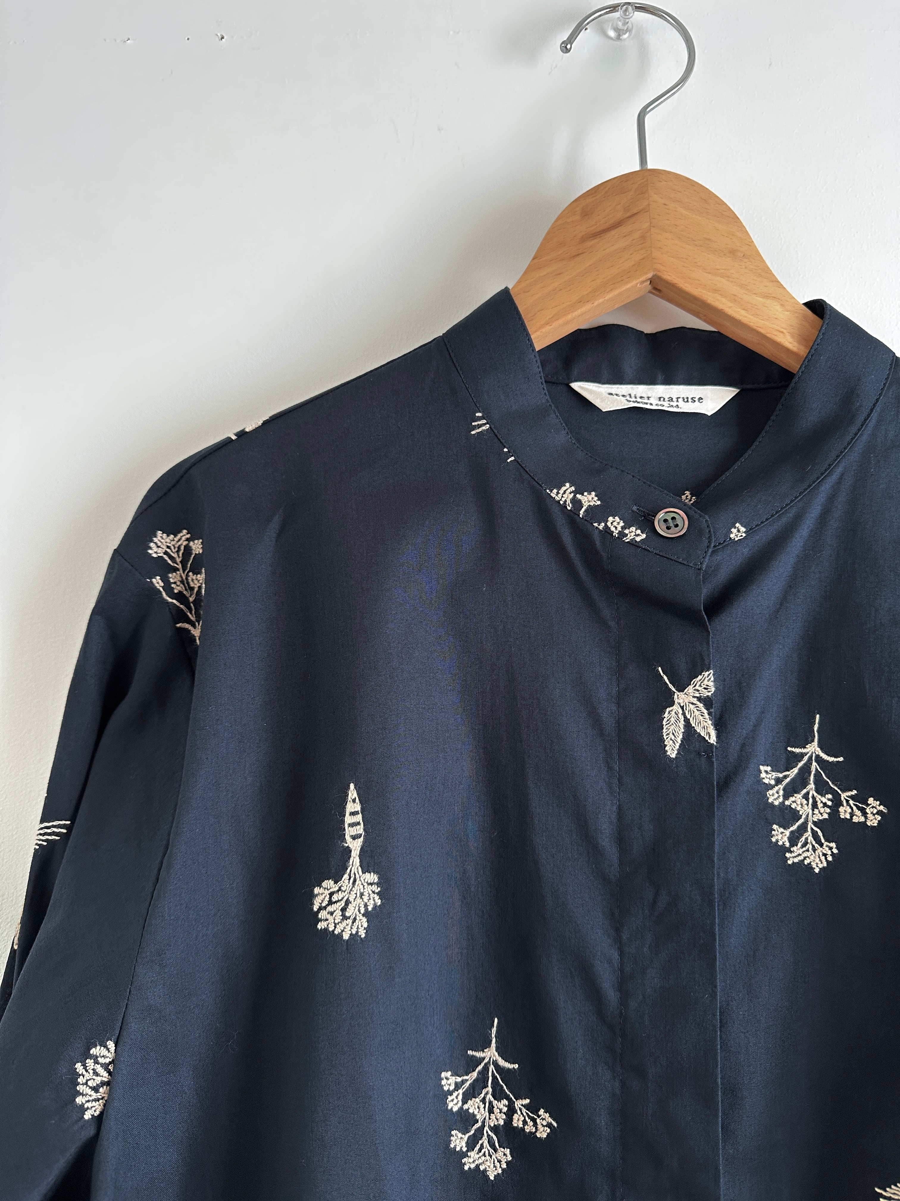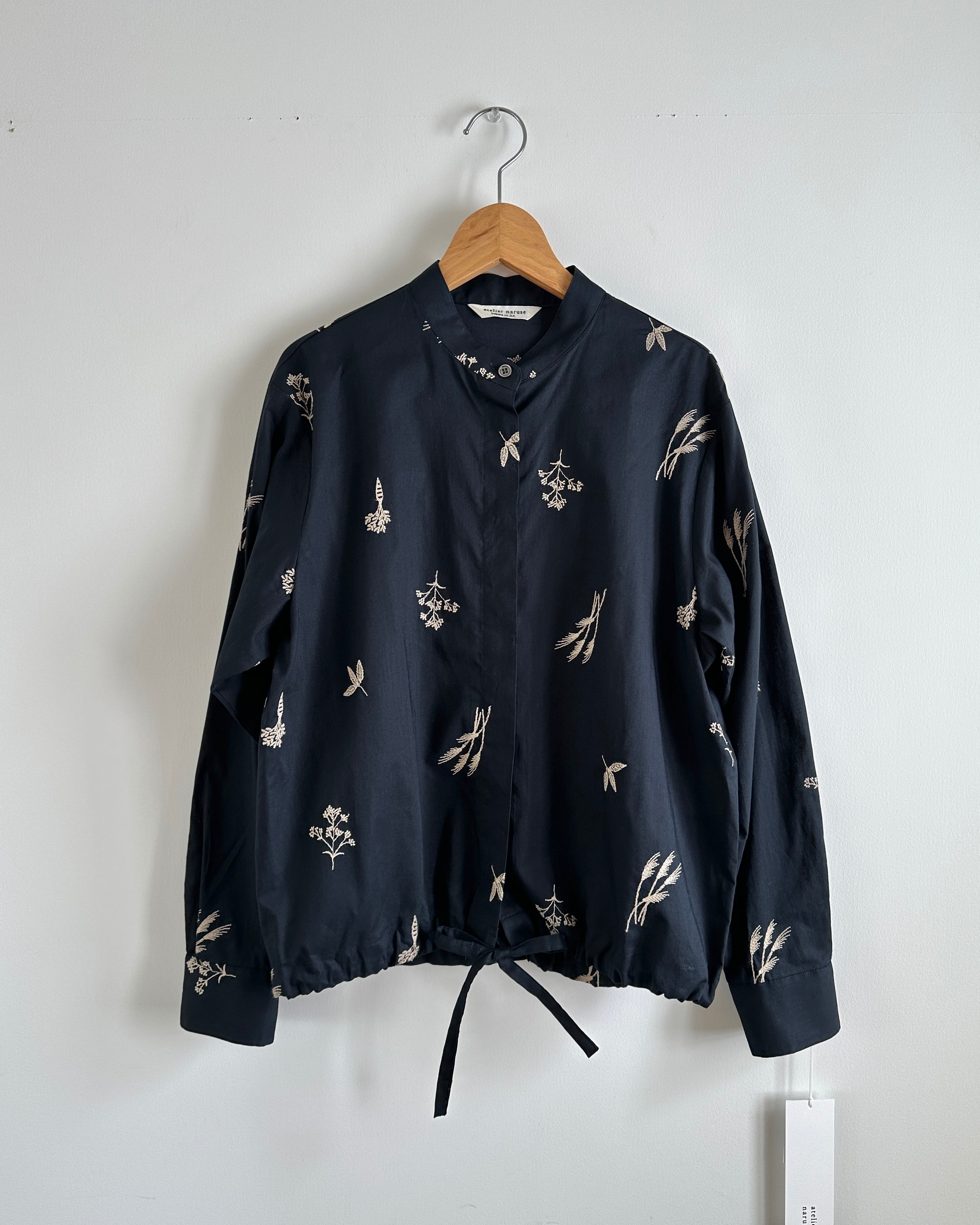 atelier naruse コットン 〜winter plants〜 裾しぼりブラウス black