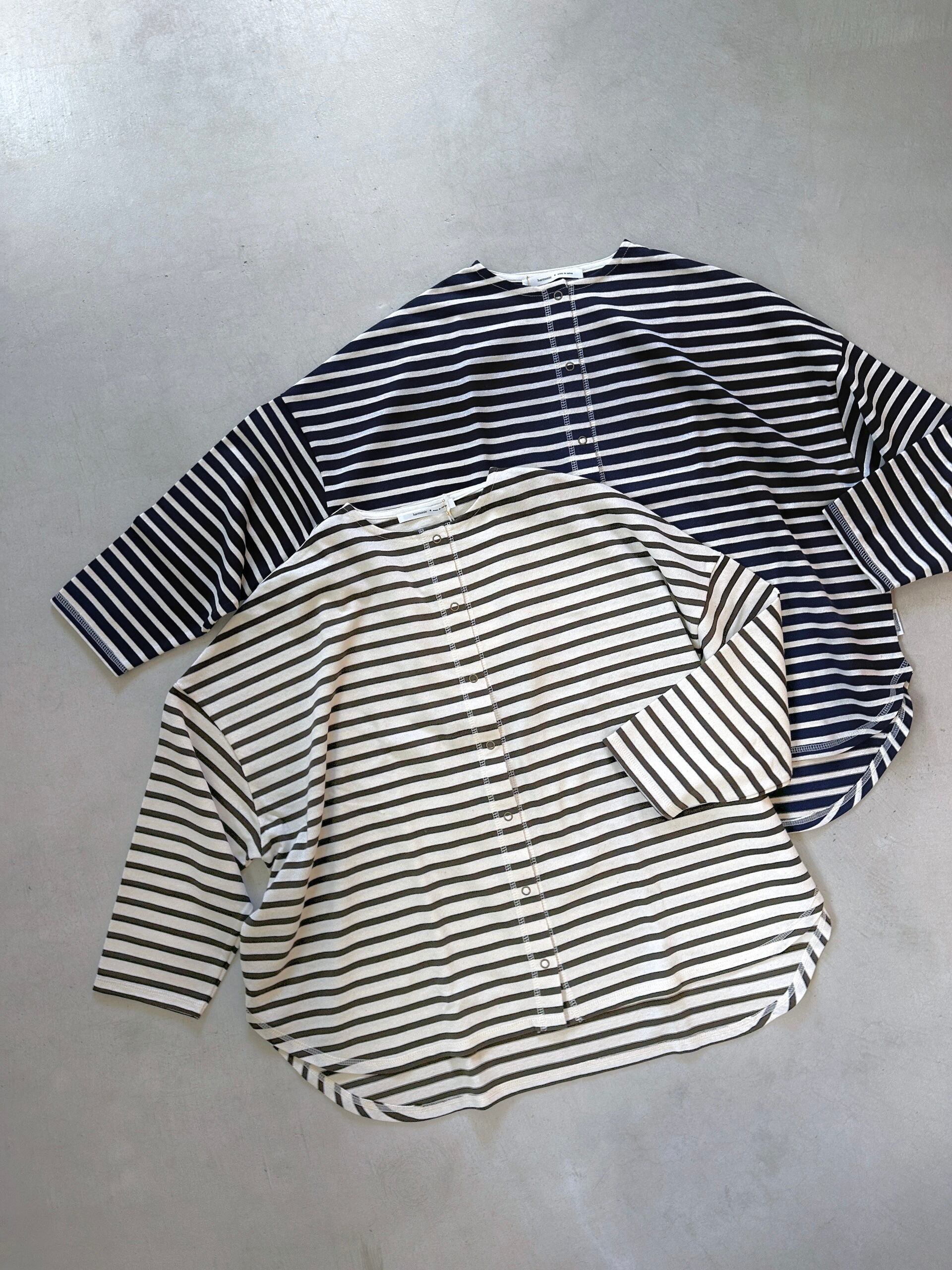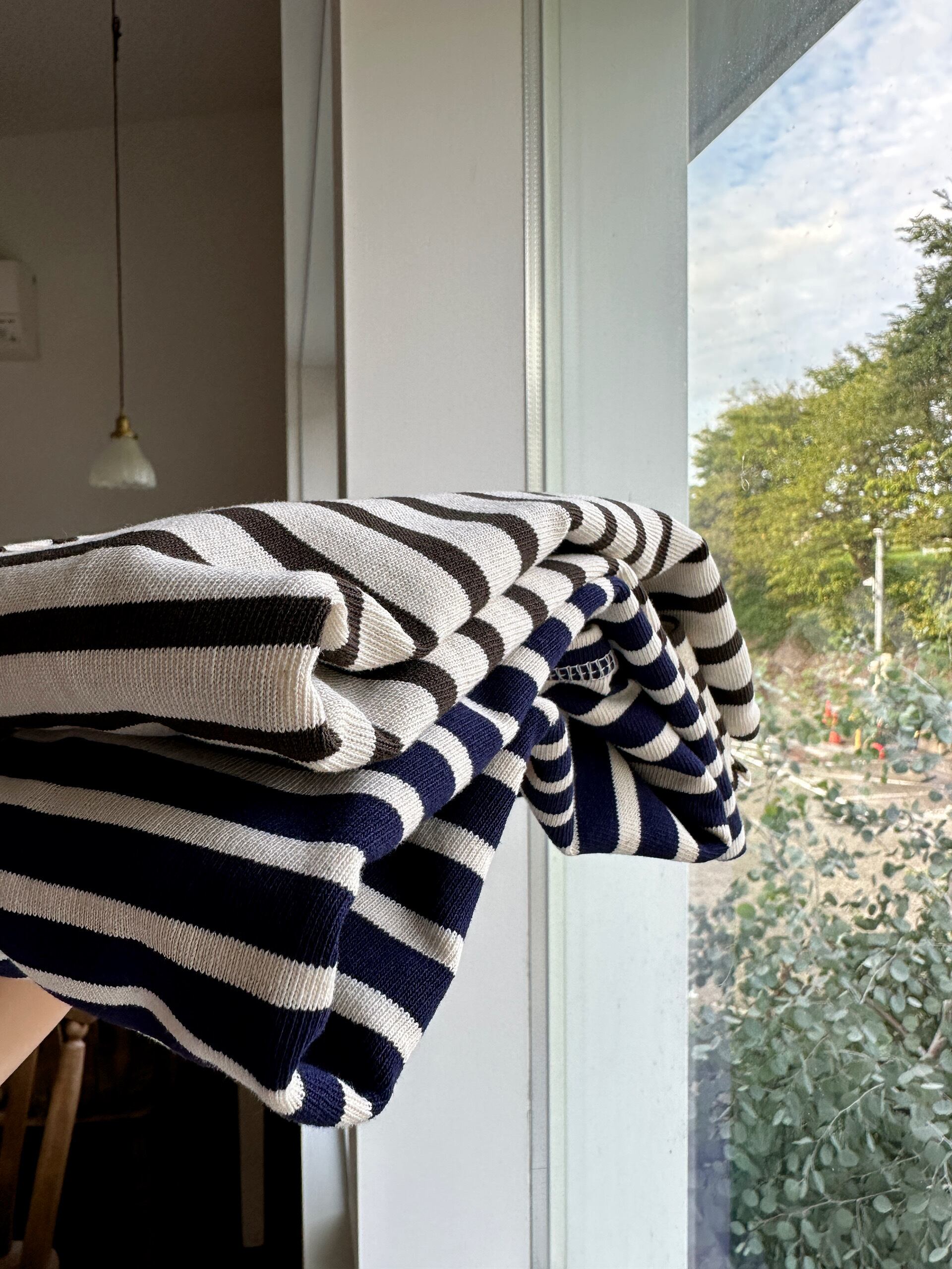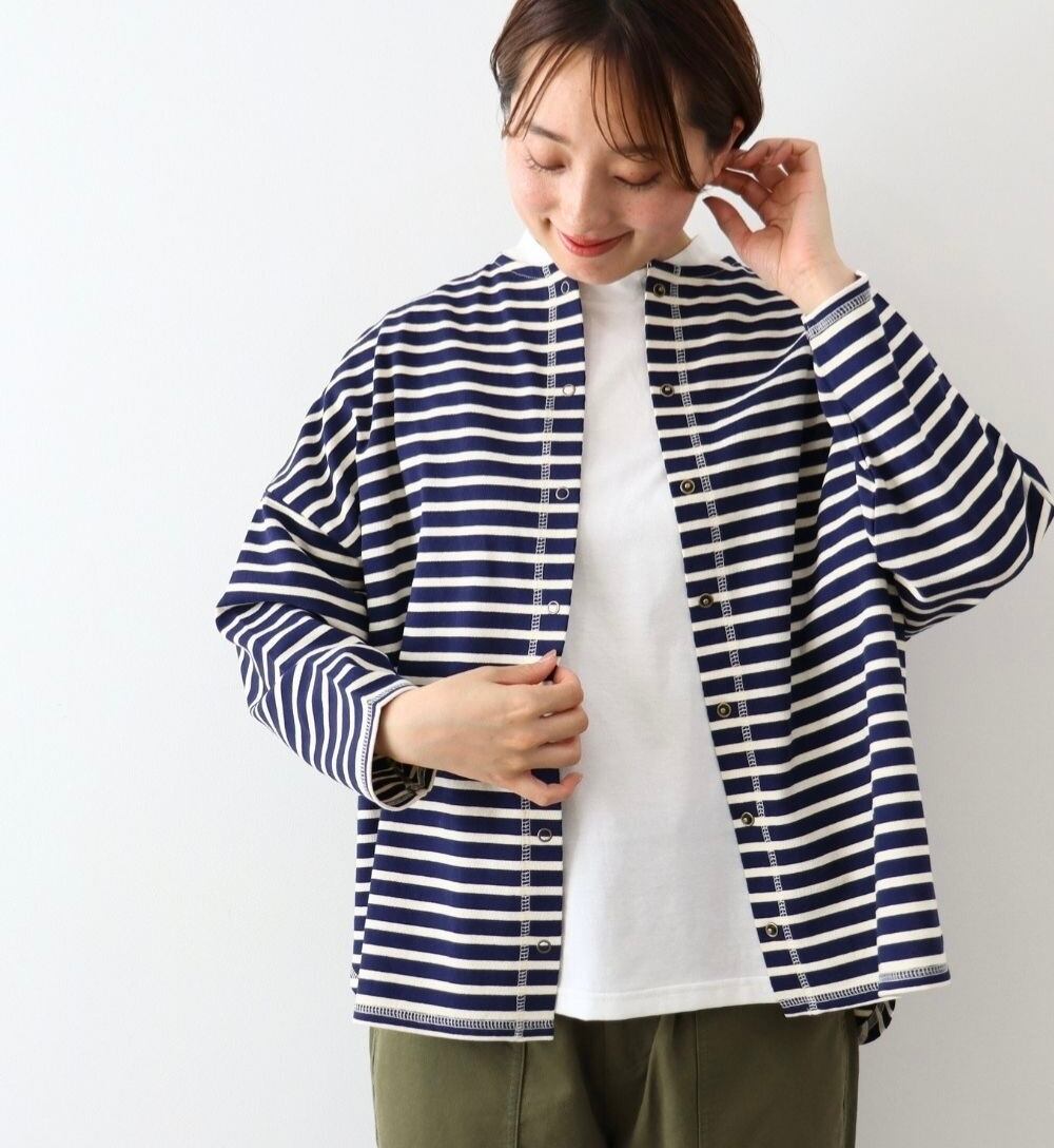 harmonie 度詰め天竺ボーダーゆったりカーディガン