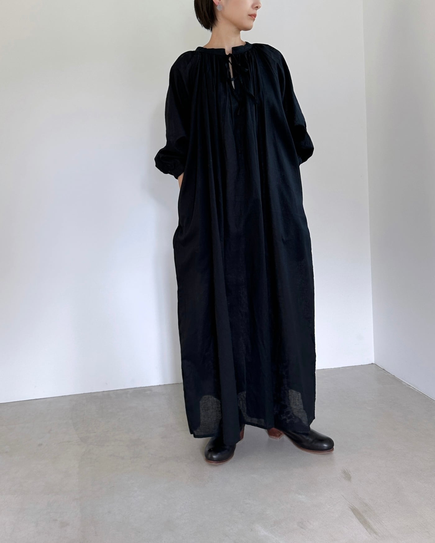 TUTIE. linen cotton 2wayロングギャザーワンピース black