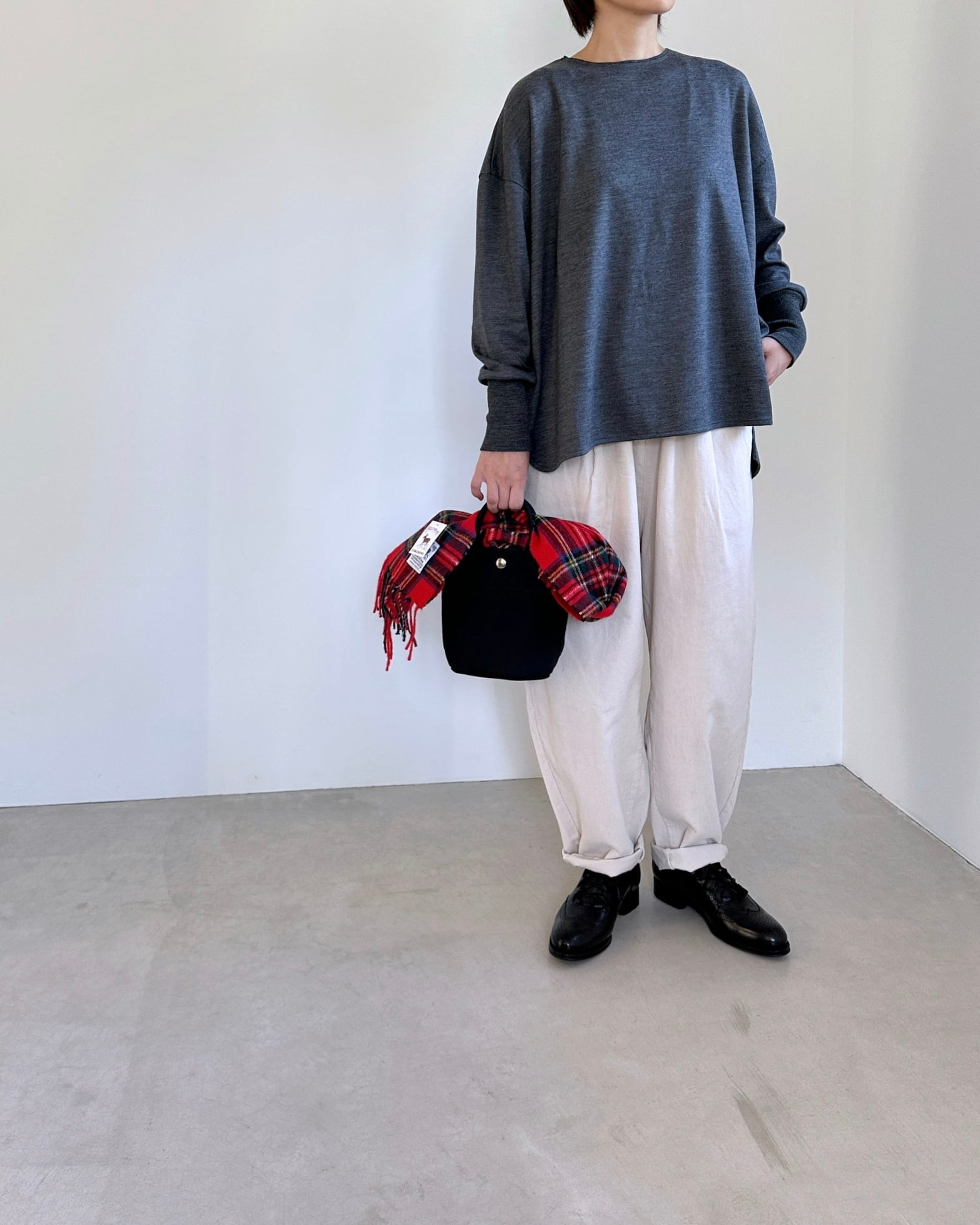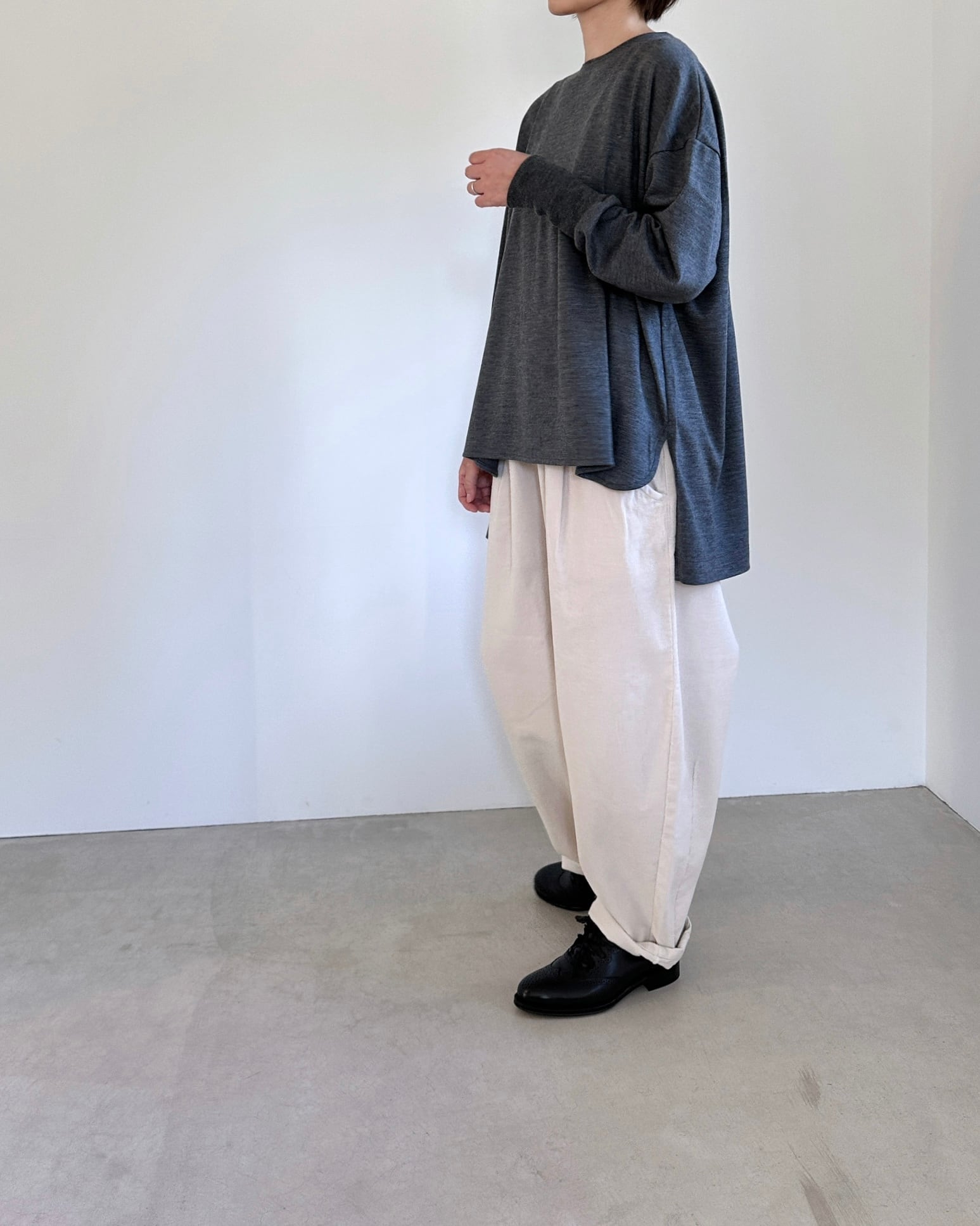 atelier naruse ウールニットカットソー +リブ melange gray