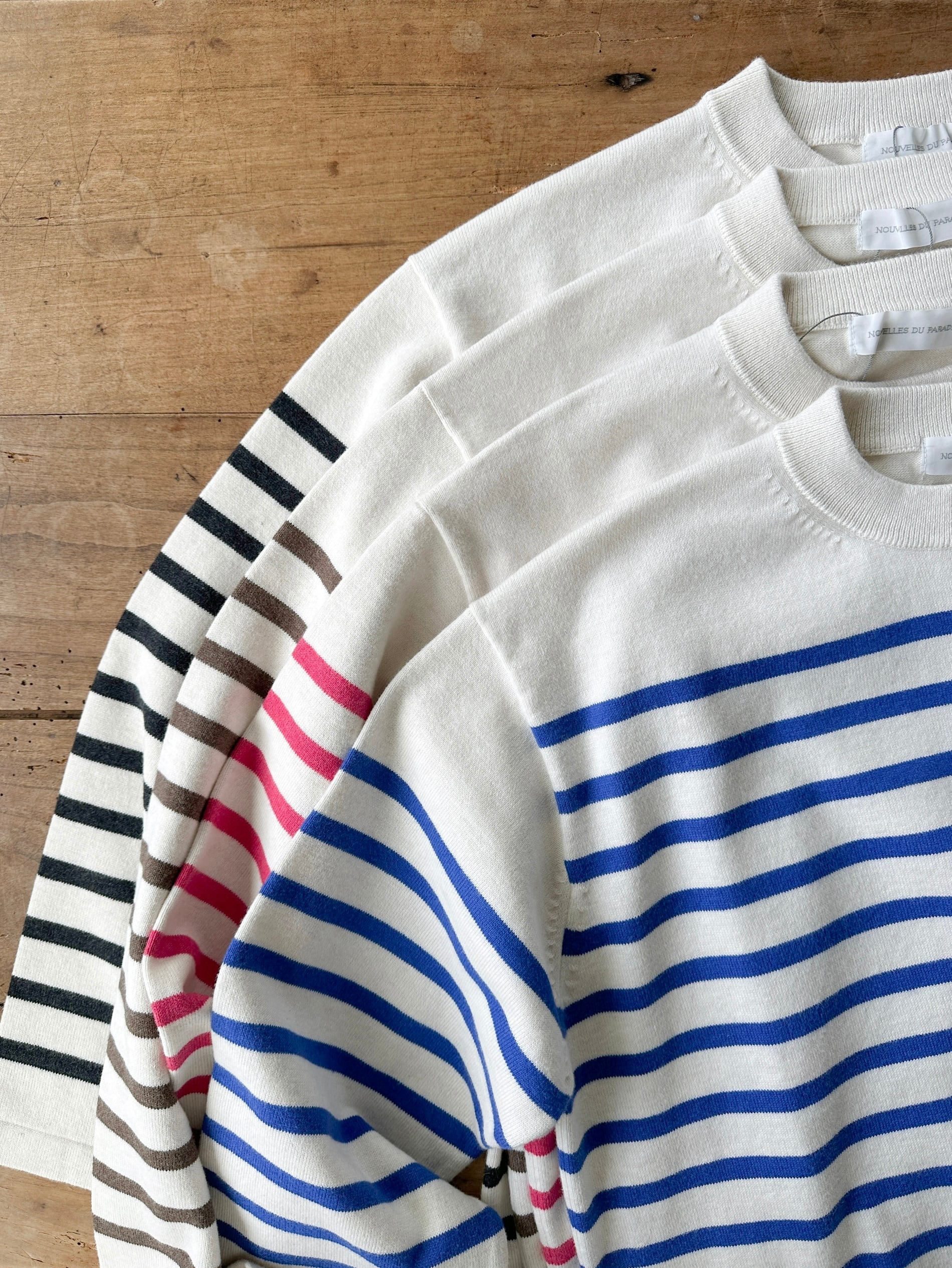 NOUVELLES DU PARADIS ムーコットン ボーダーバスクプルオーバー