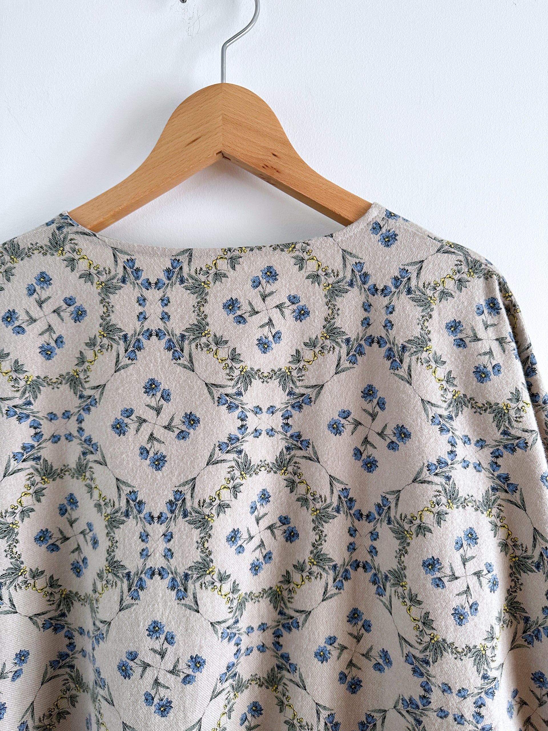 どこかタイルのようなデザインの花柄が、