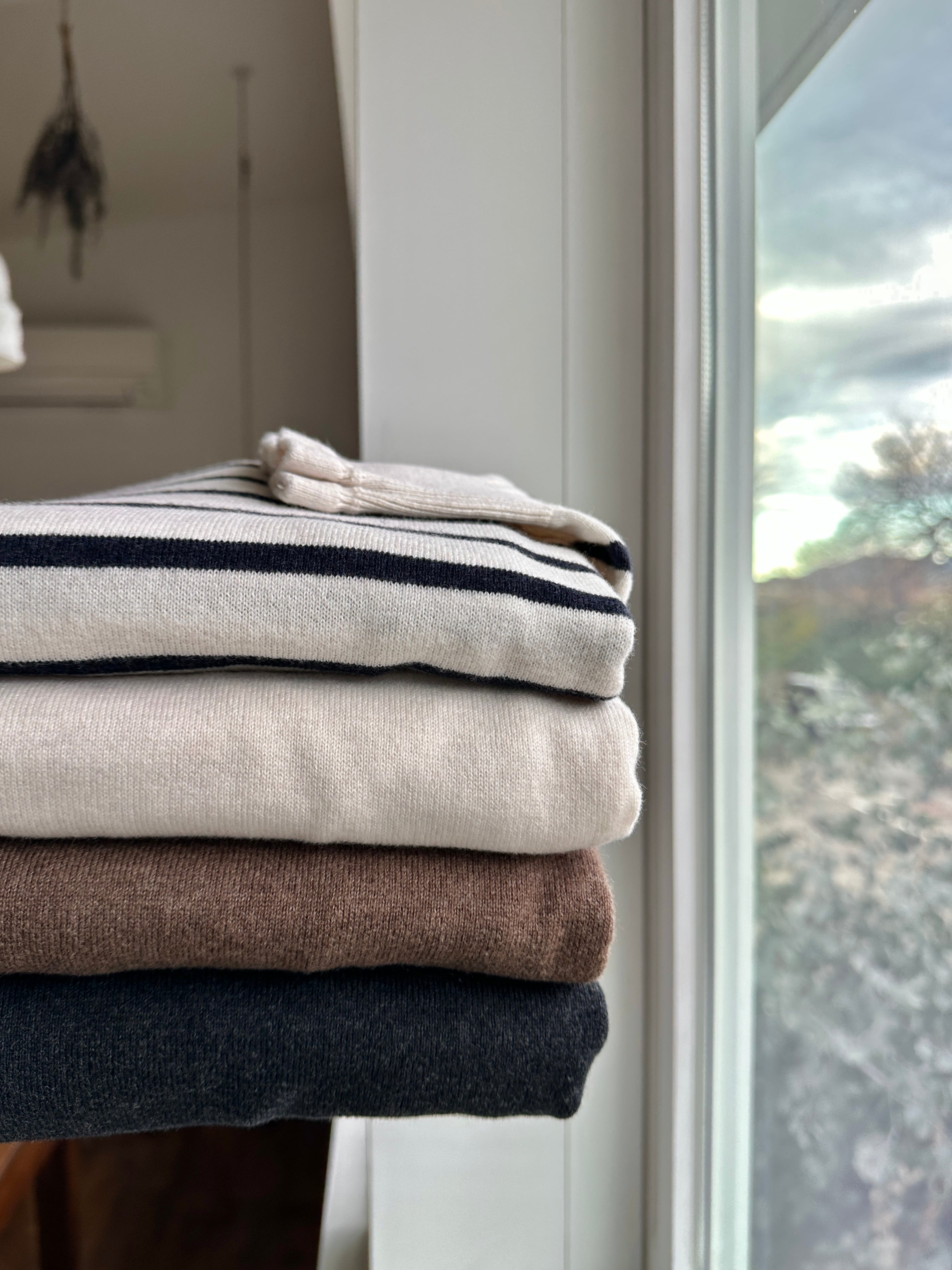 NOUVELLES DU PARADIS ムーコットン フリルハイネックプルオーバー