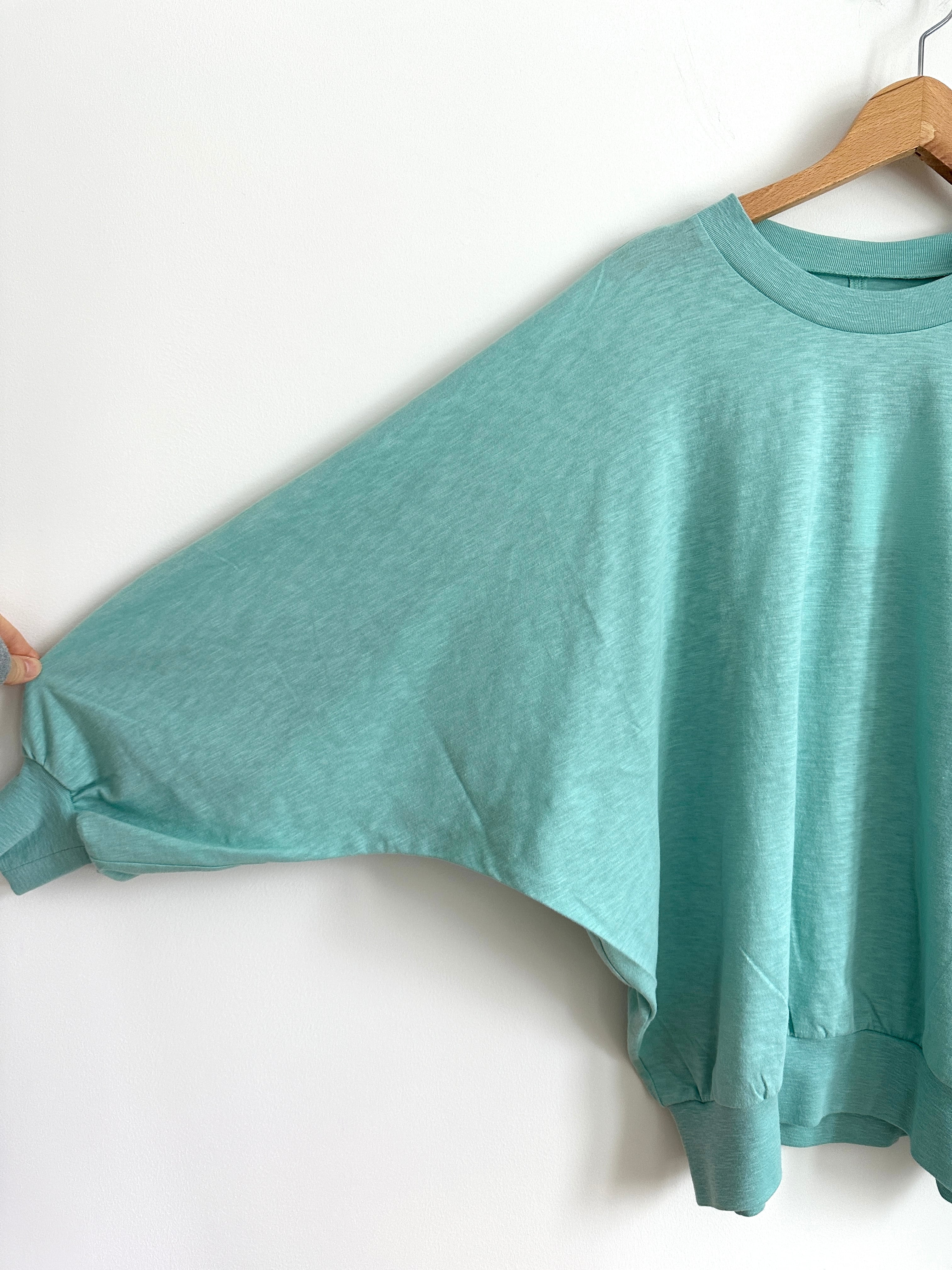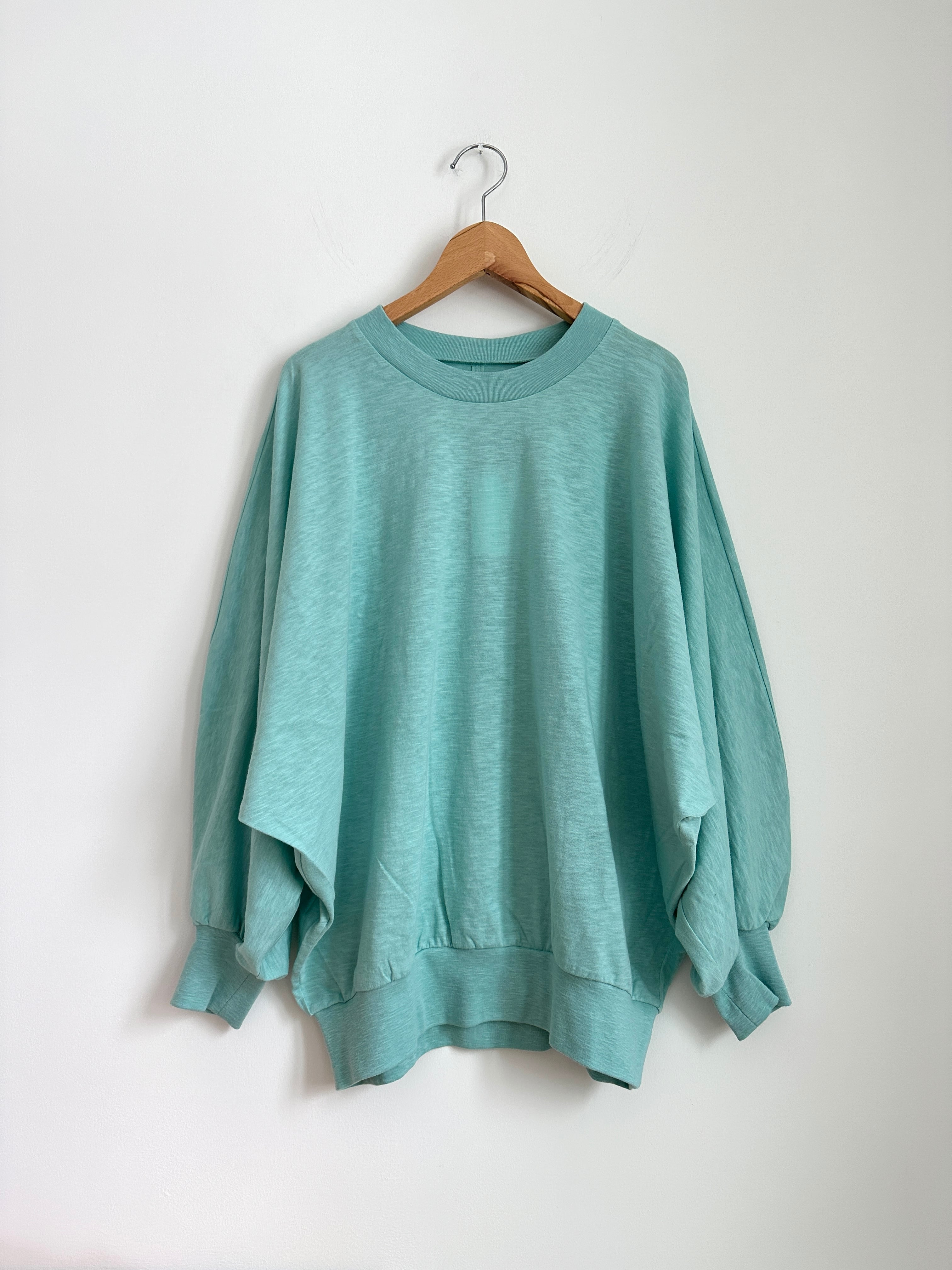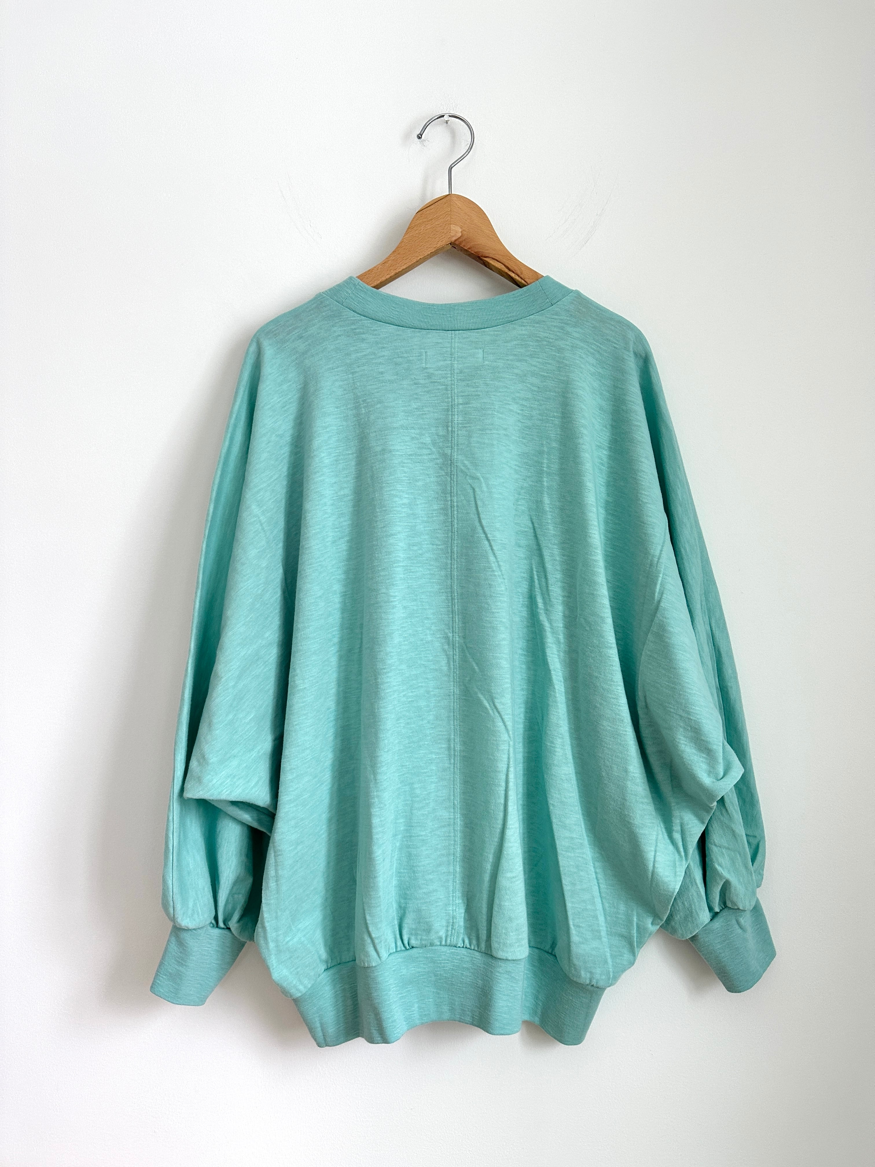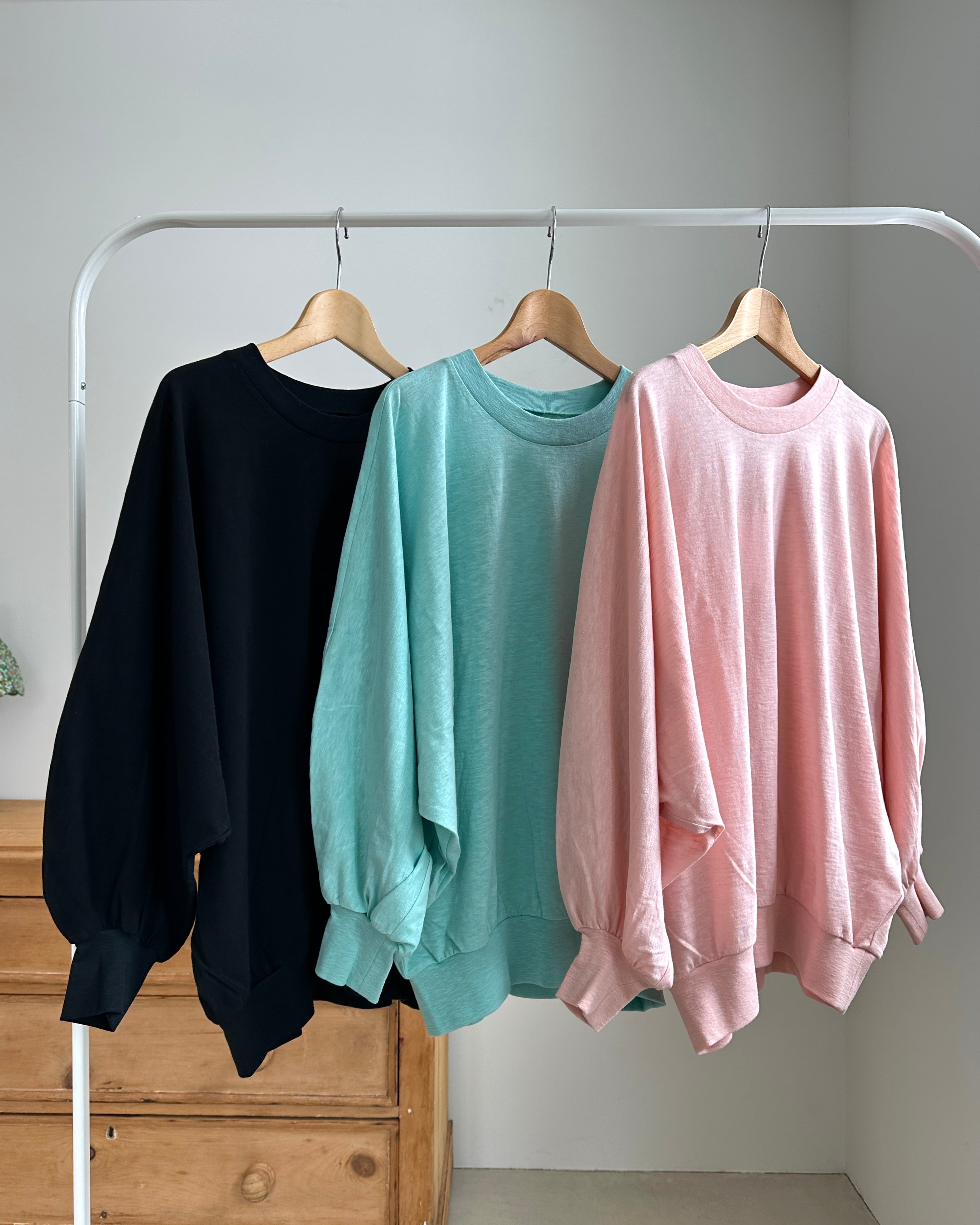 たっぷりとした身幅と袖幅のプルオーバーで、