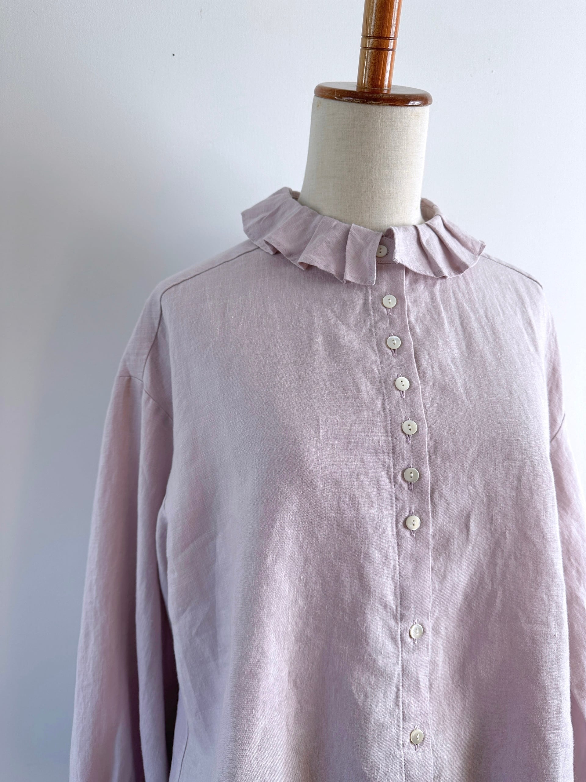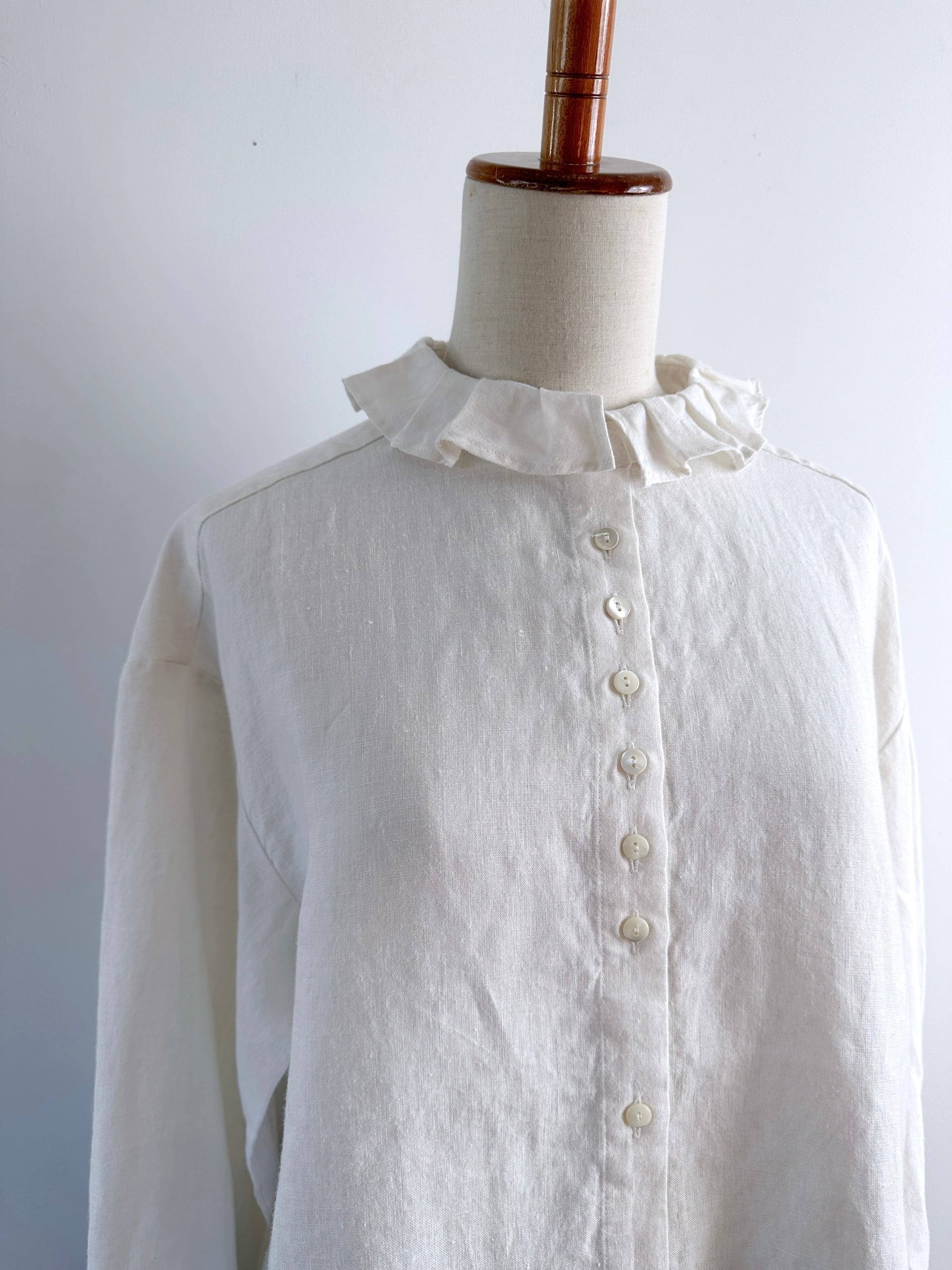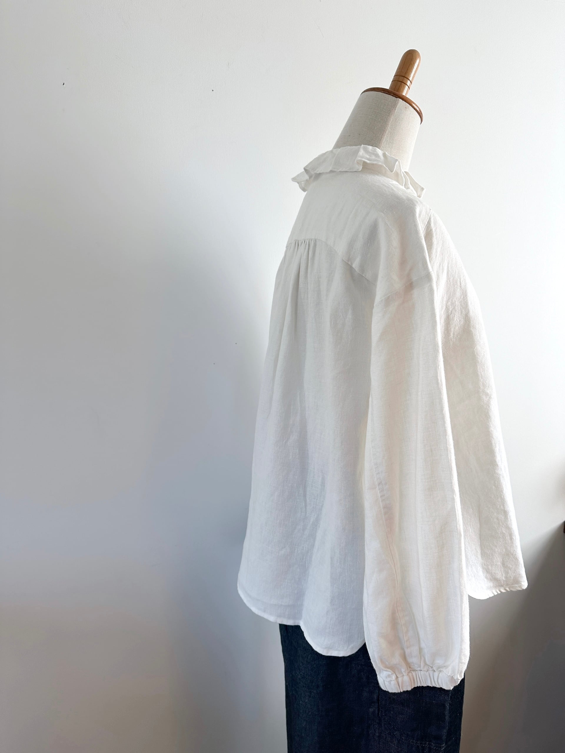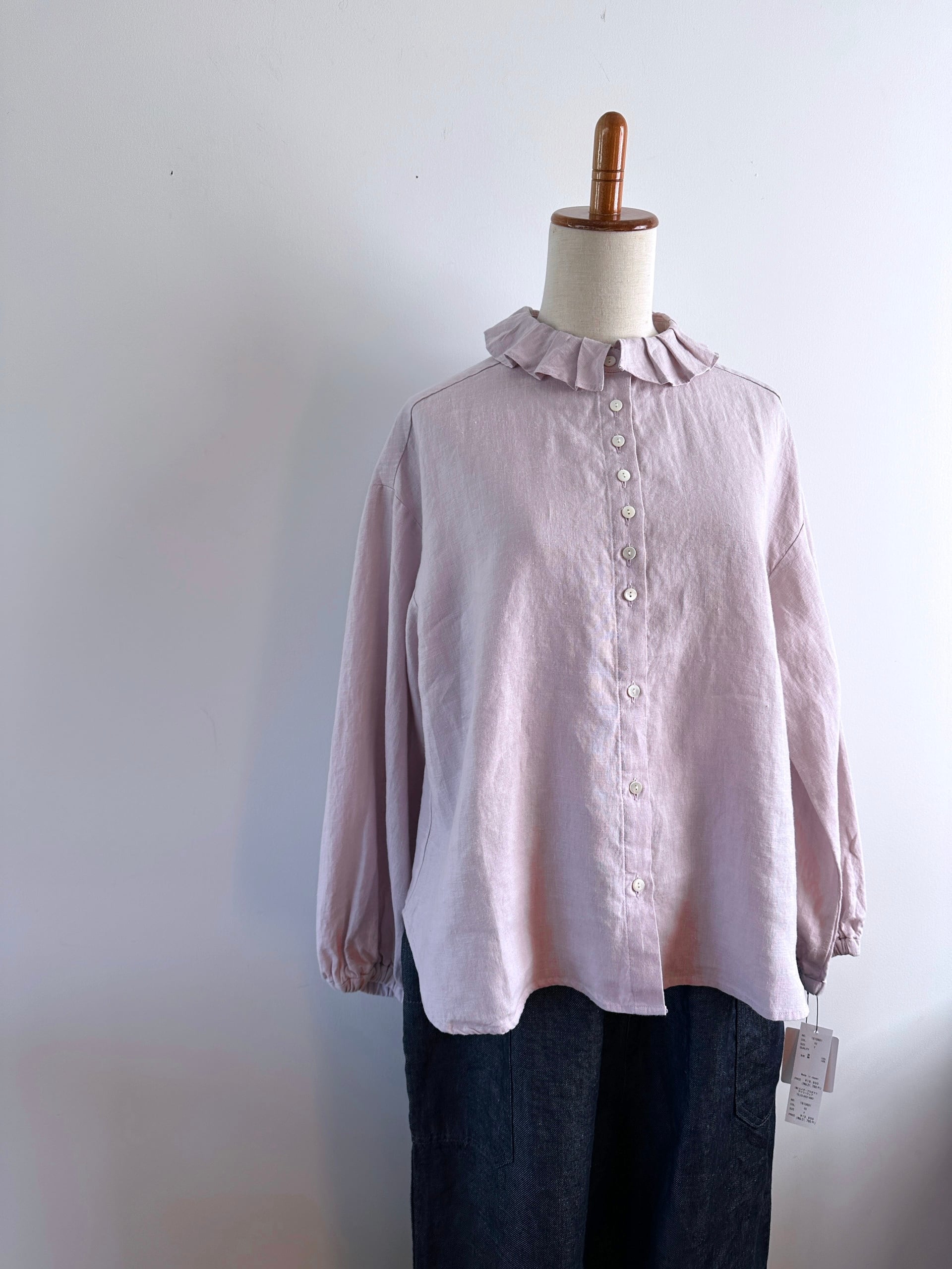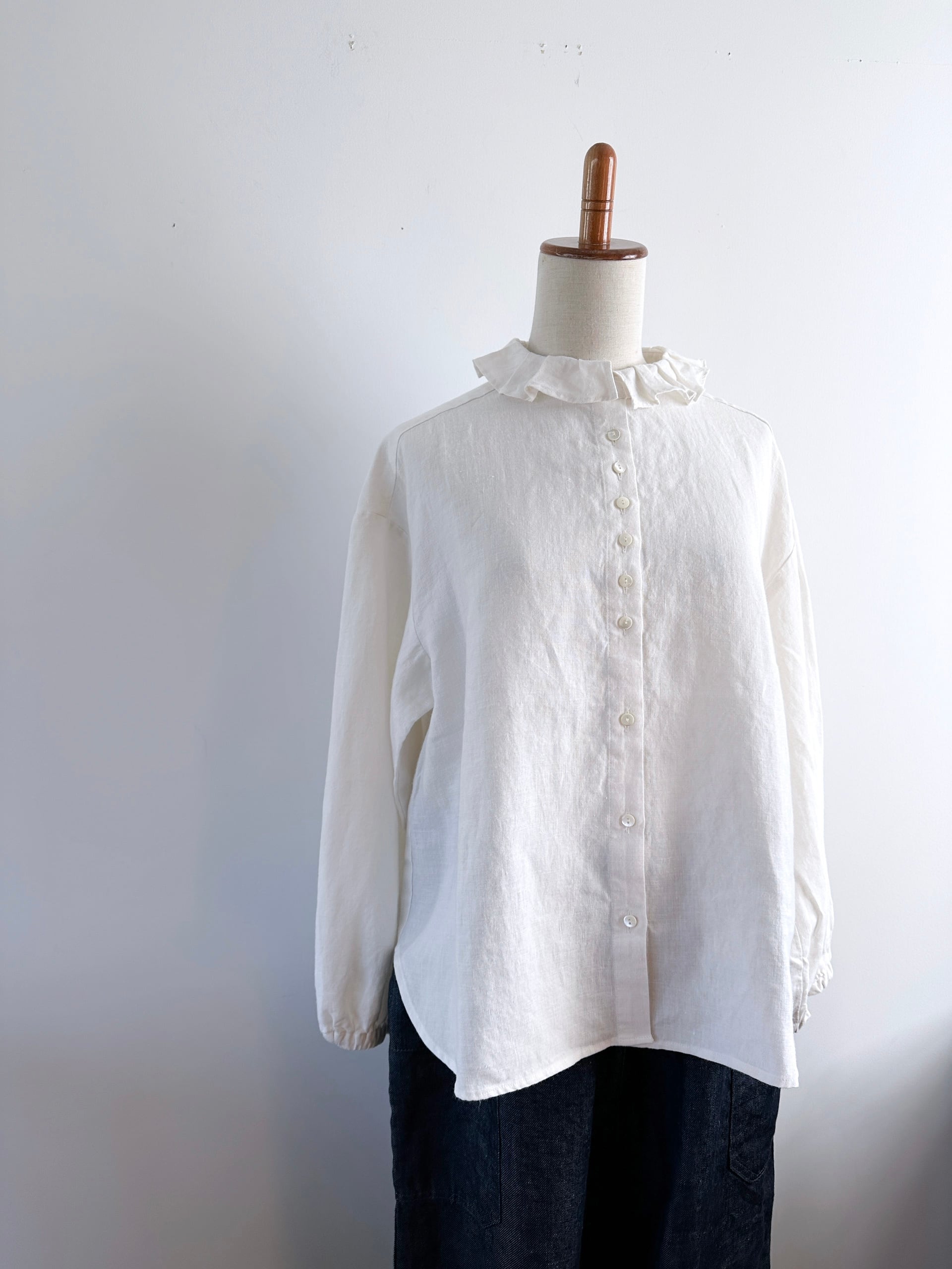 Hands of creation 40/-linen フリルタックフラットカラーブラウス