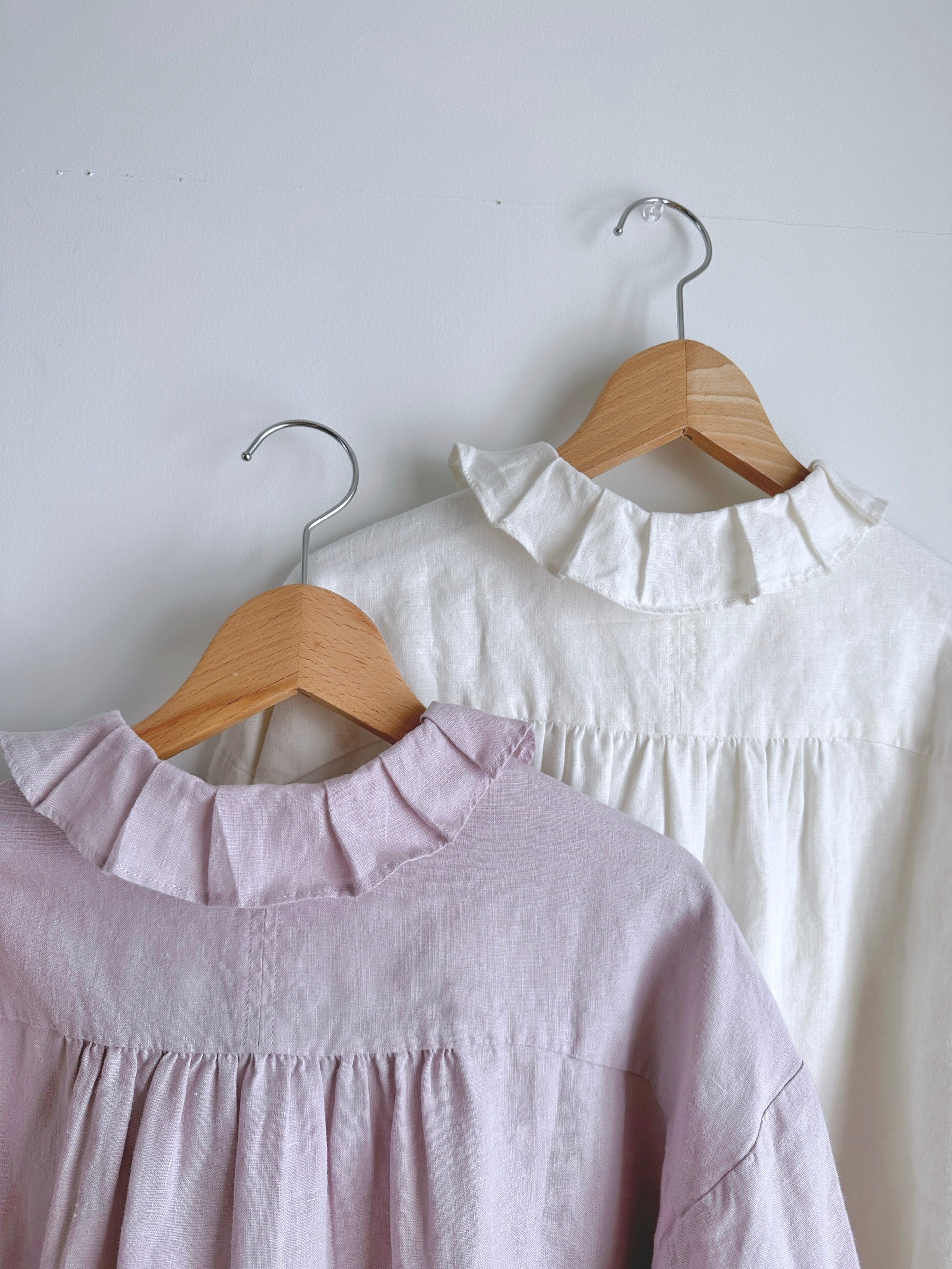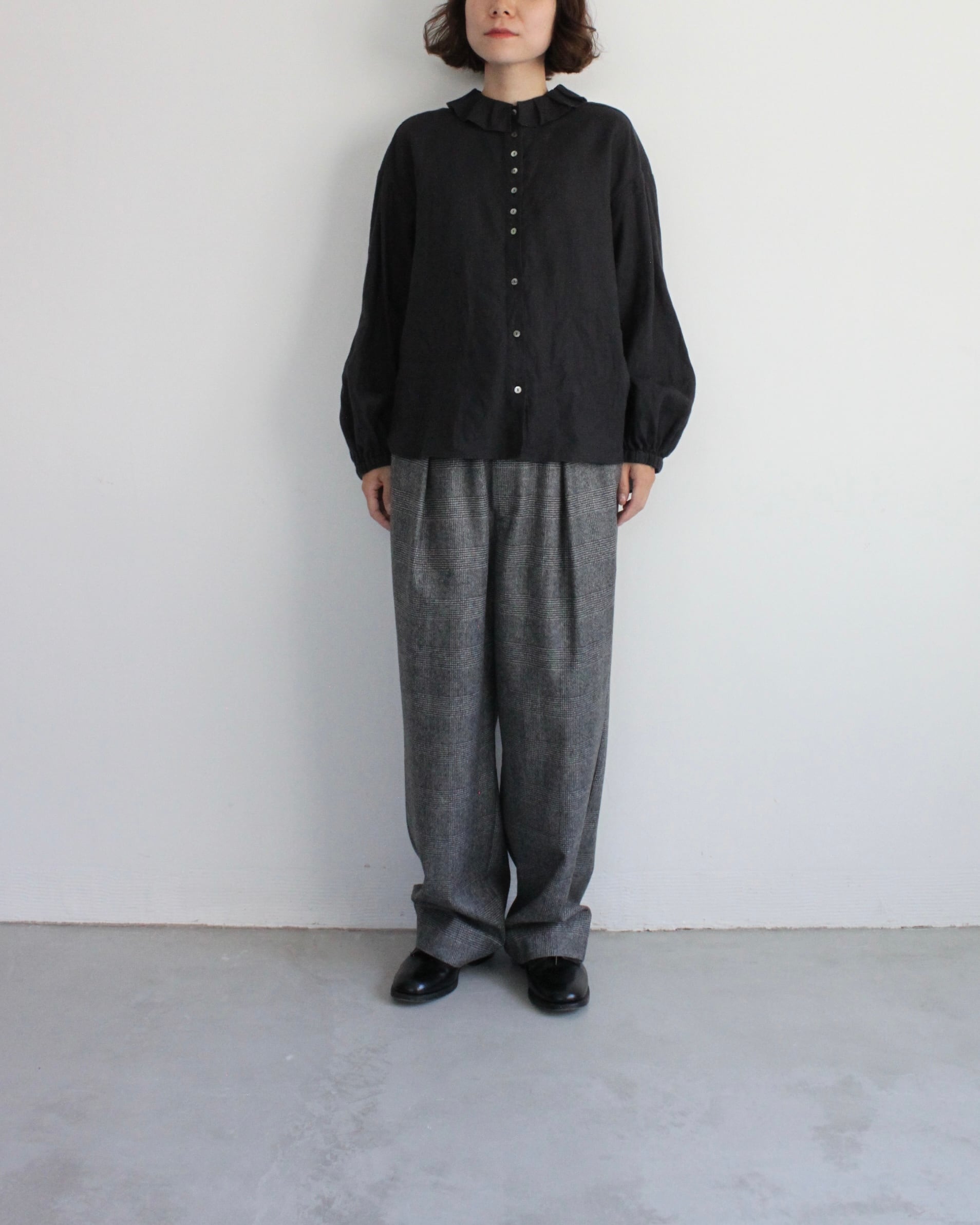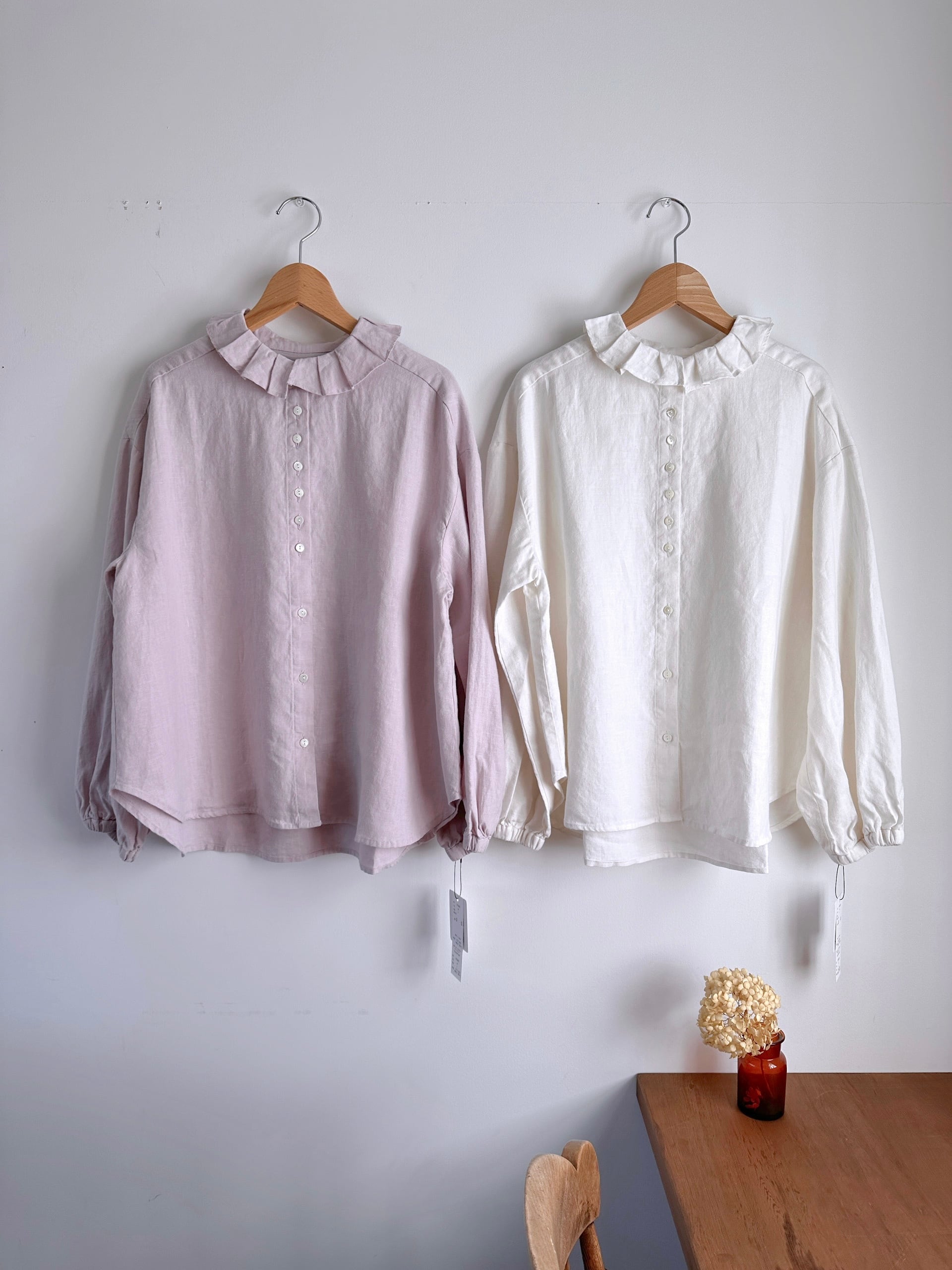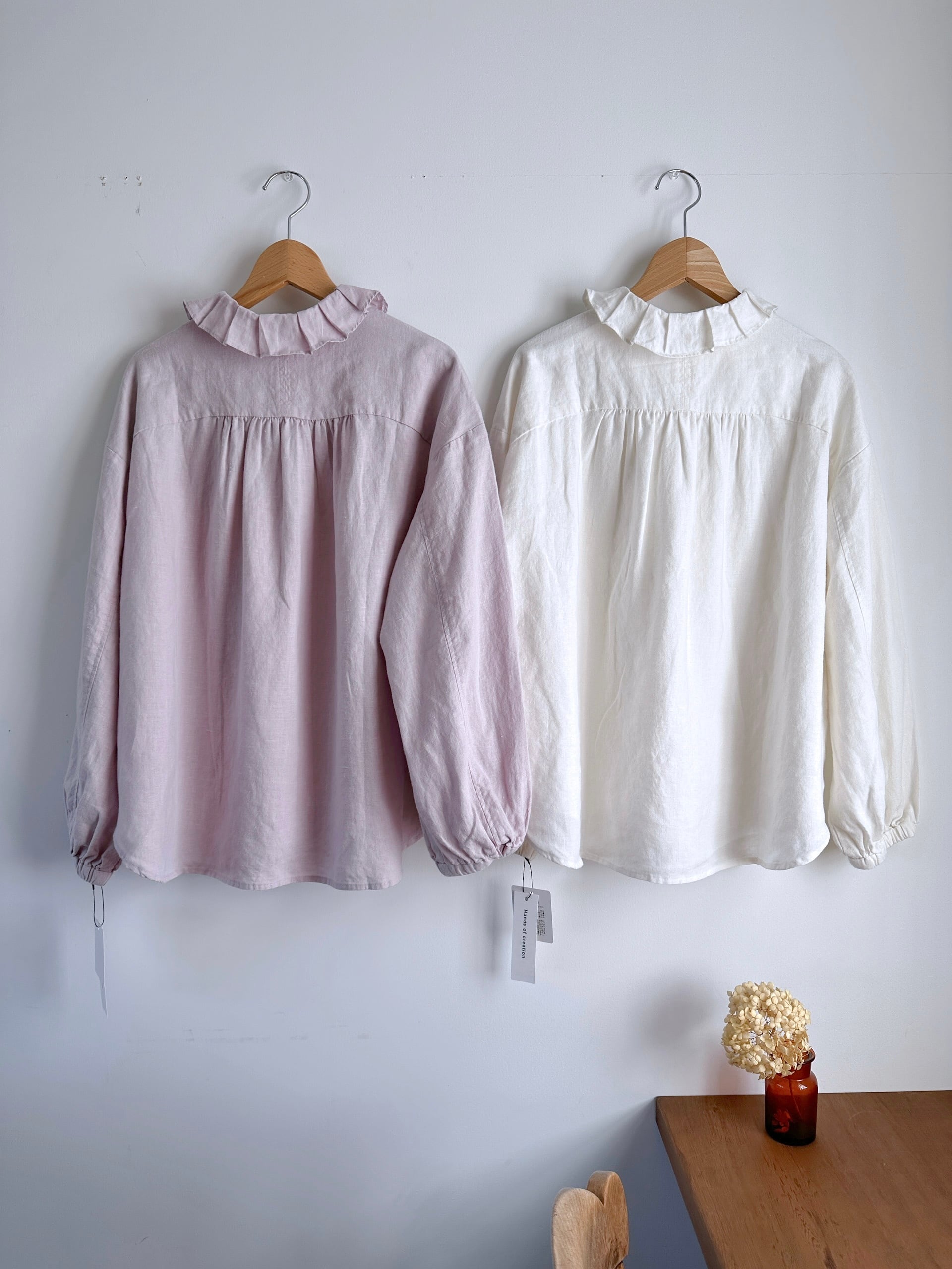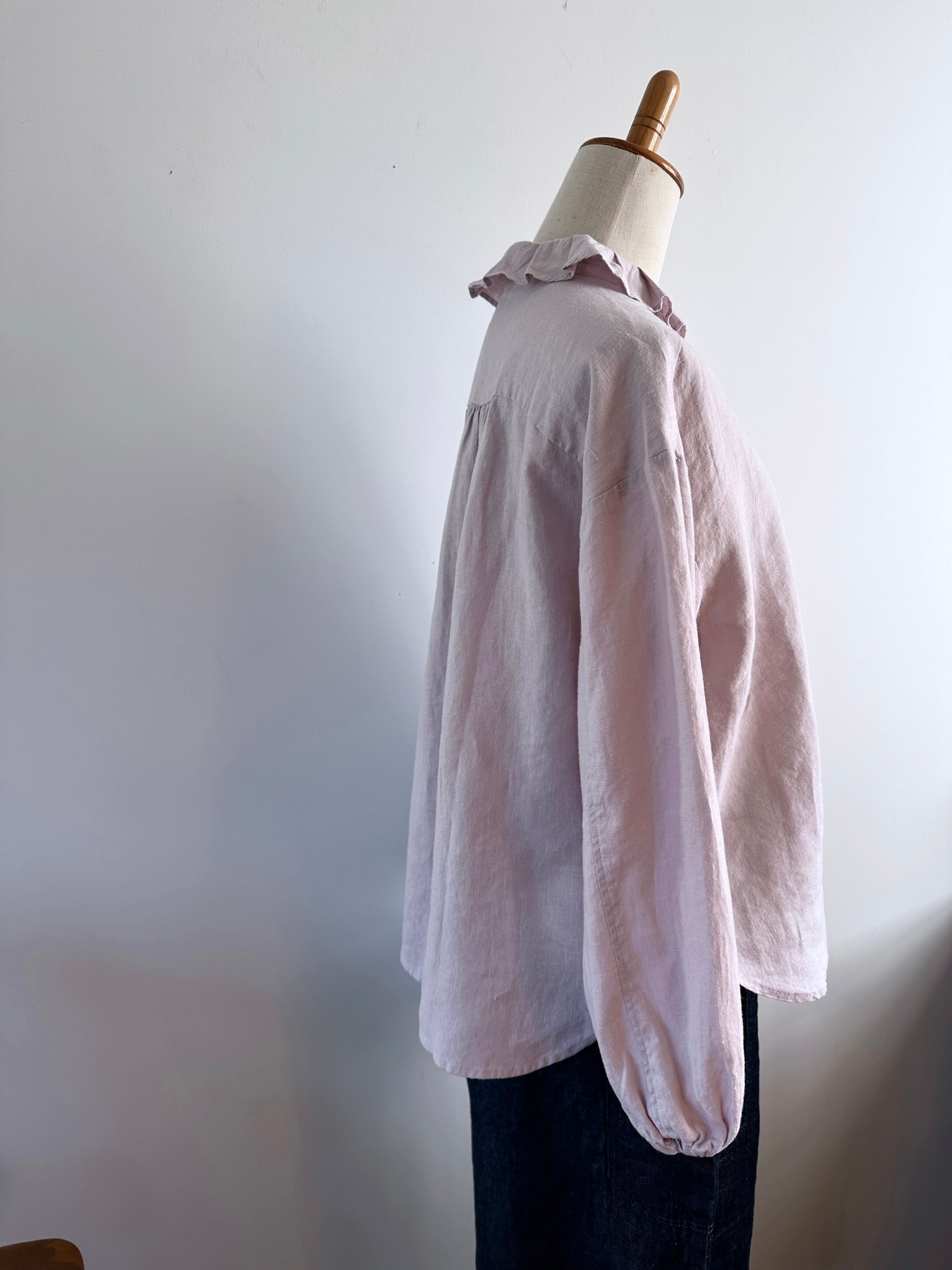 Hands of creation 40/-linen フリルタックフラットカラーブラウス