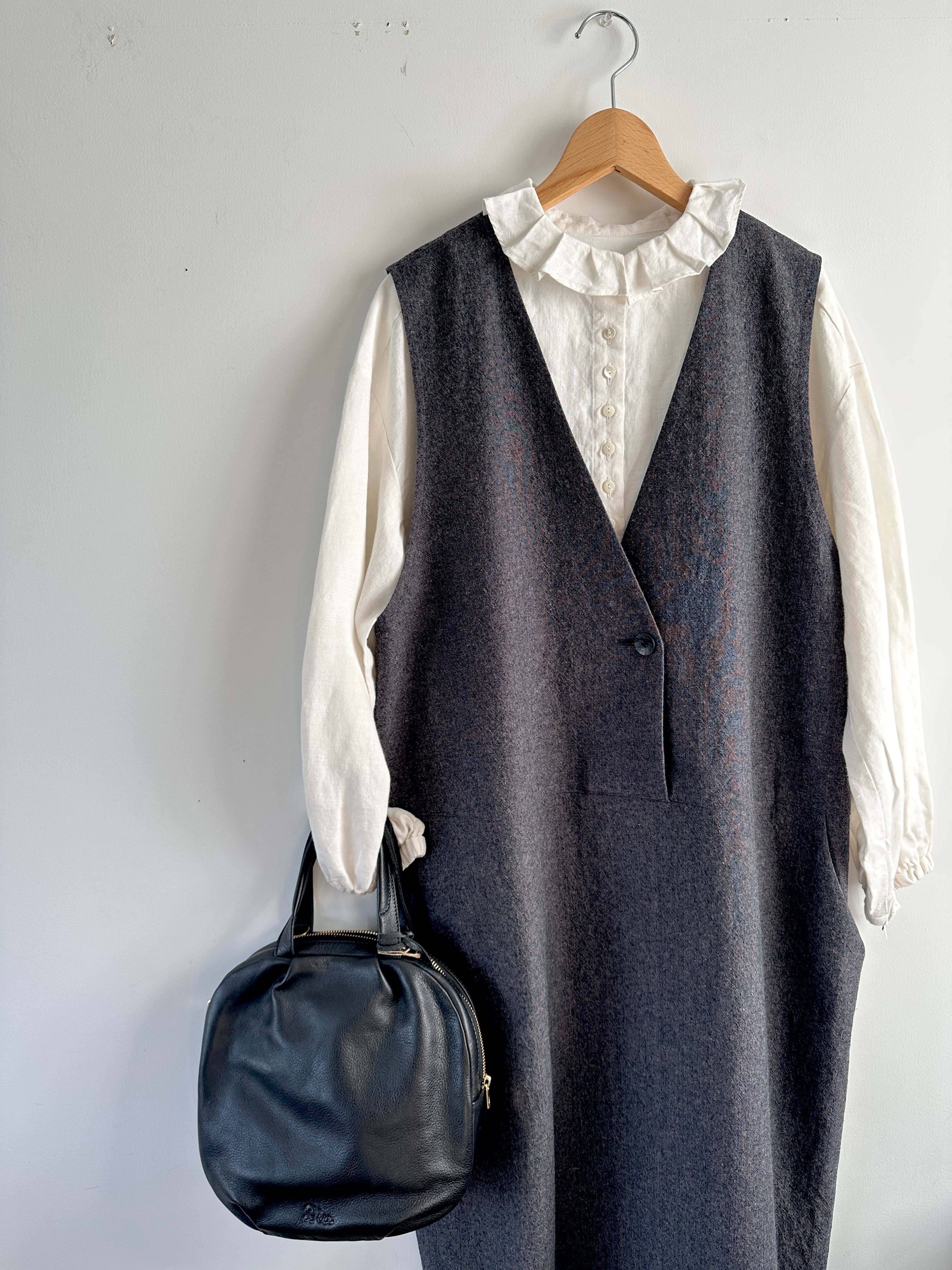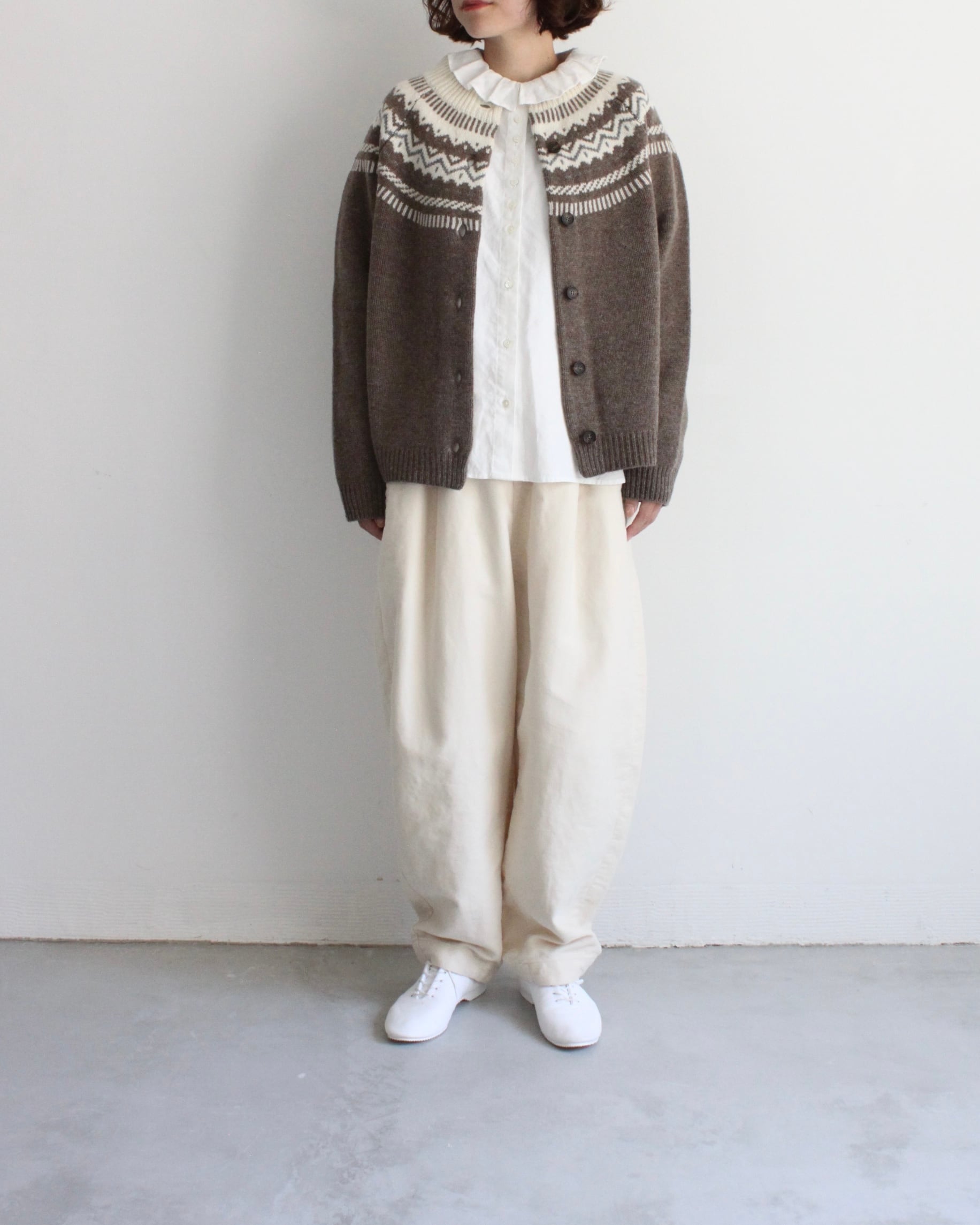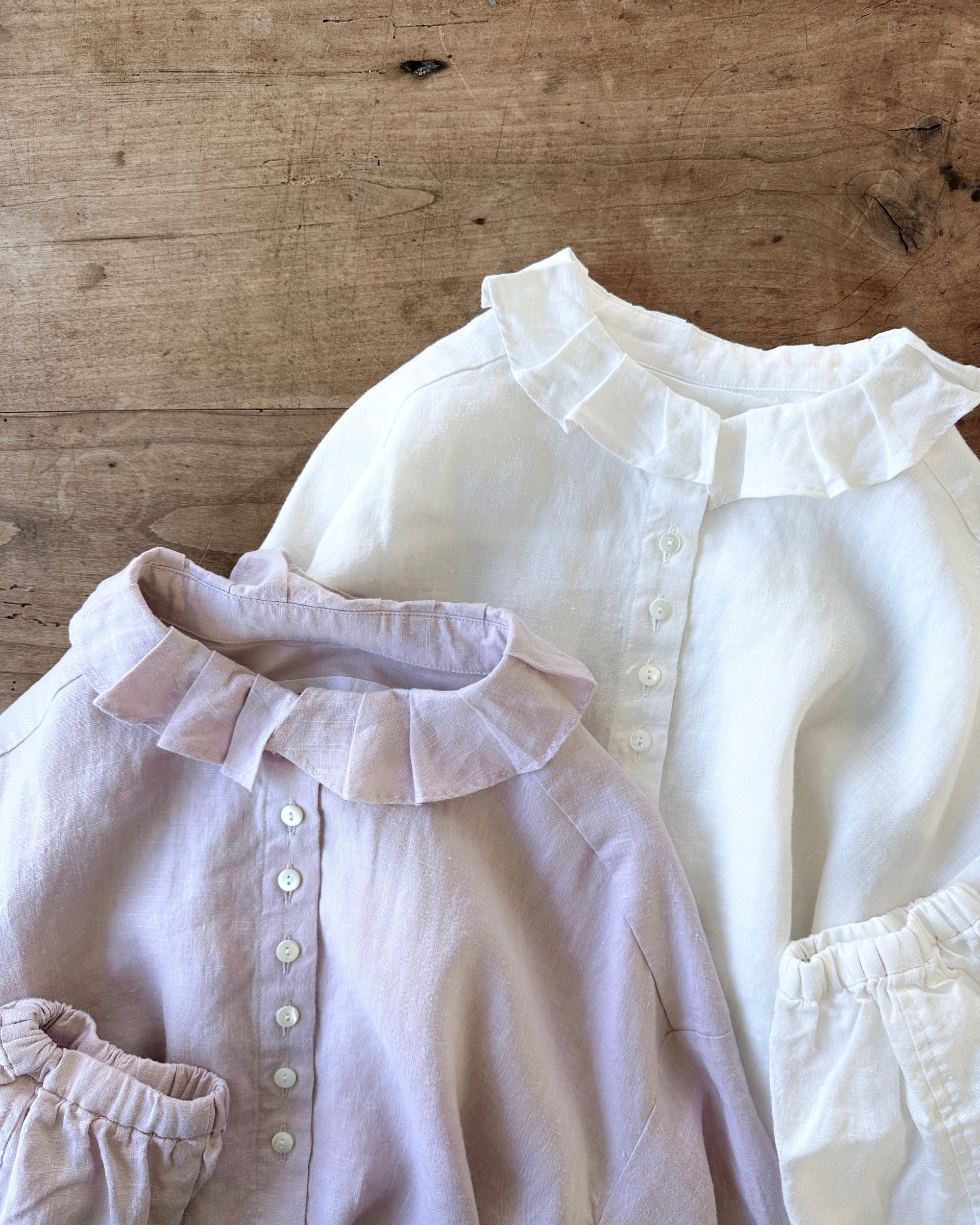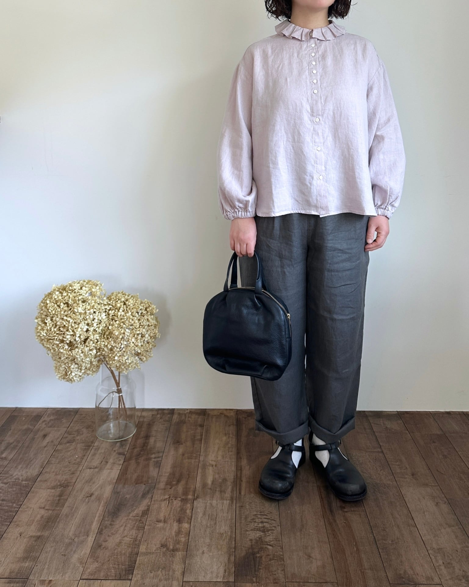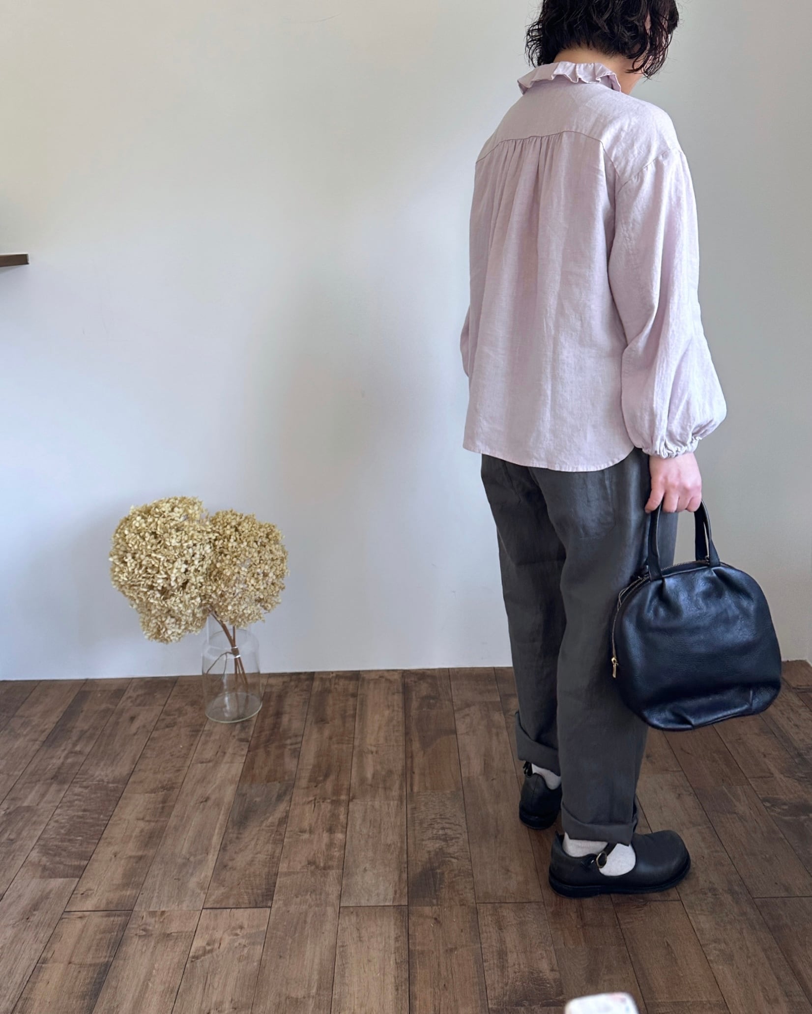 Hands of creation 40/-linen フリルタックフラットカラーブラウス