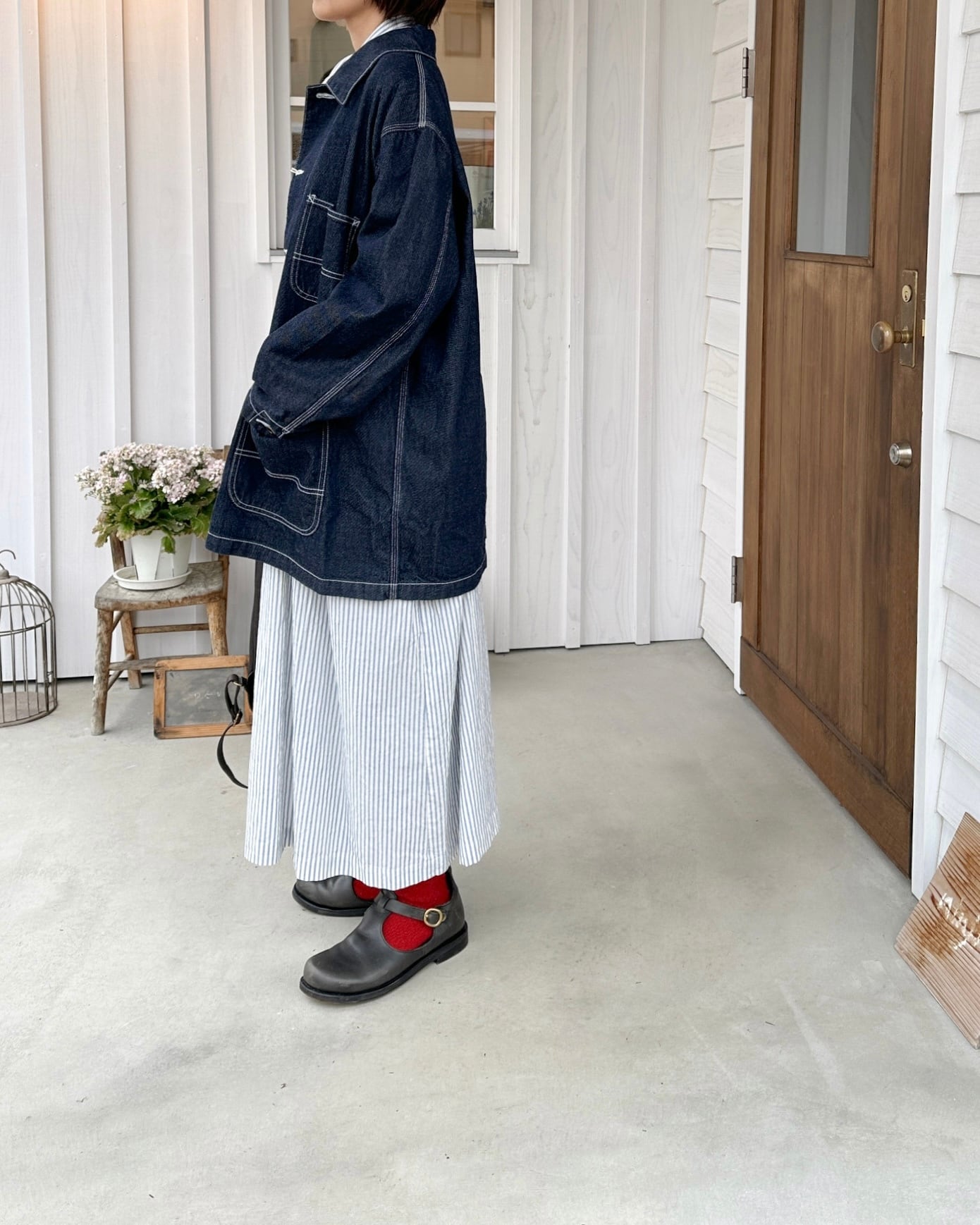 インディゴデニムに白のステッチを効かせた