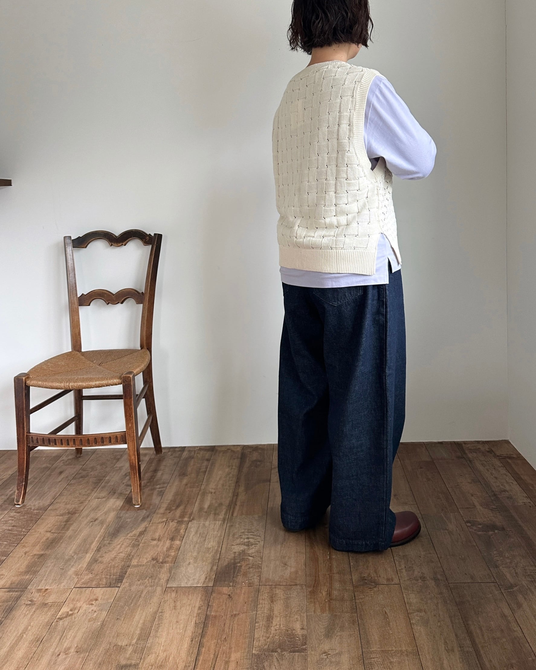 両サイドの裾には段差があるスリットが入っています。