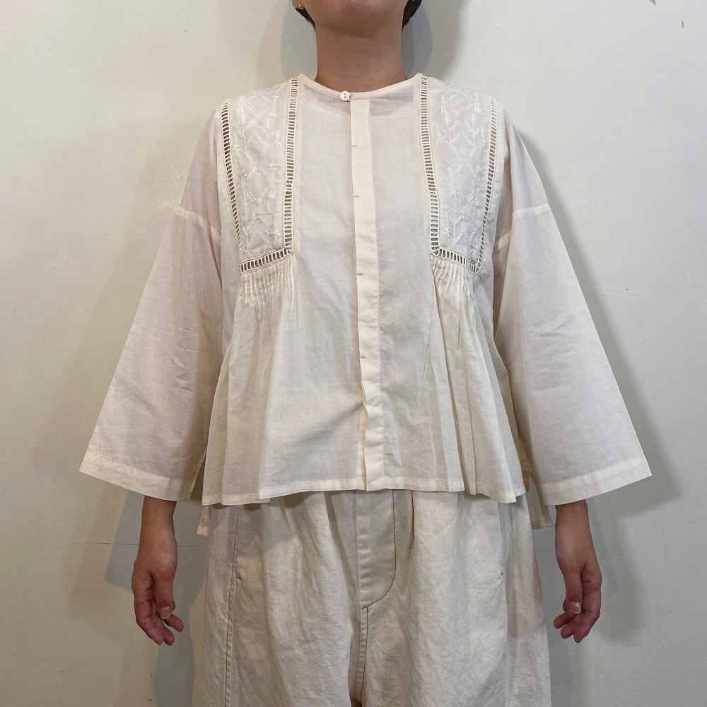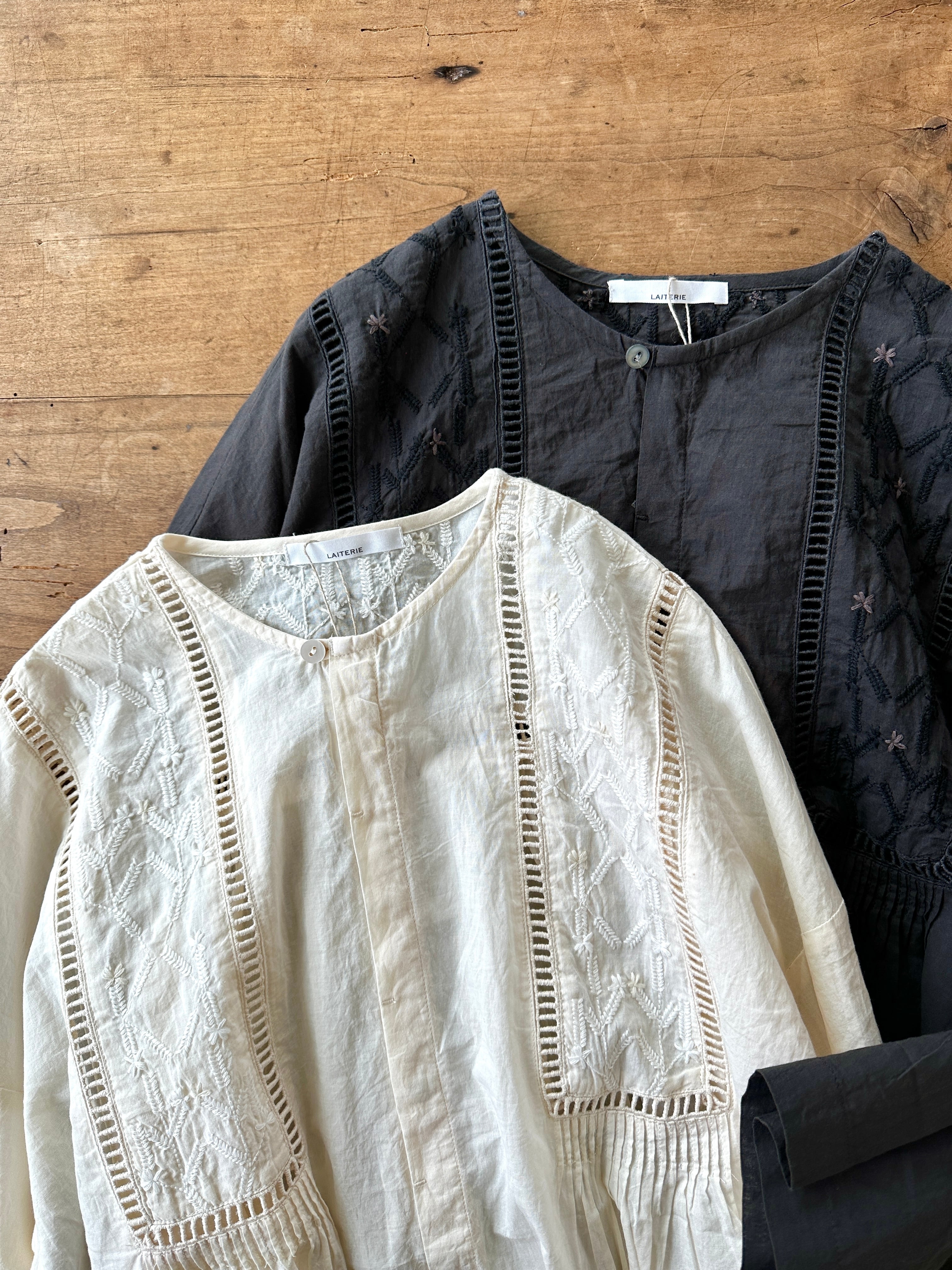LAITERIE 60キャンブリック ヨーク刺繍ブラウス