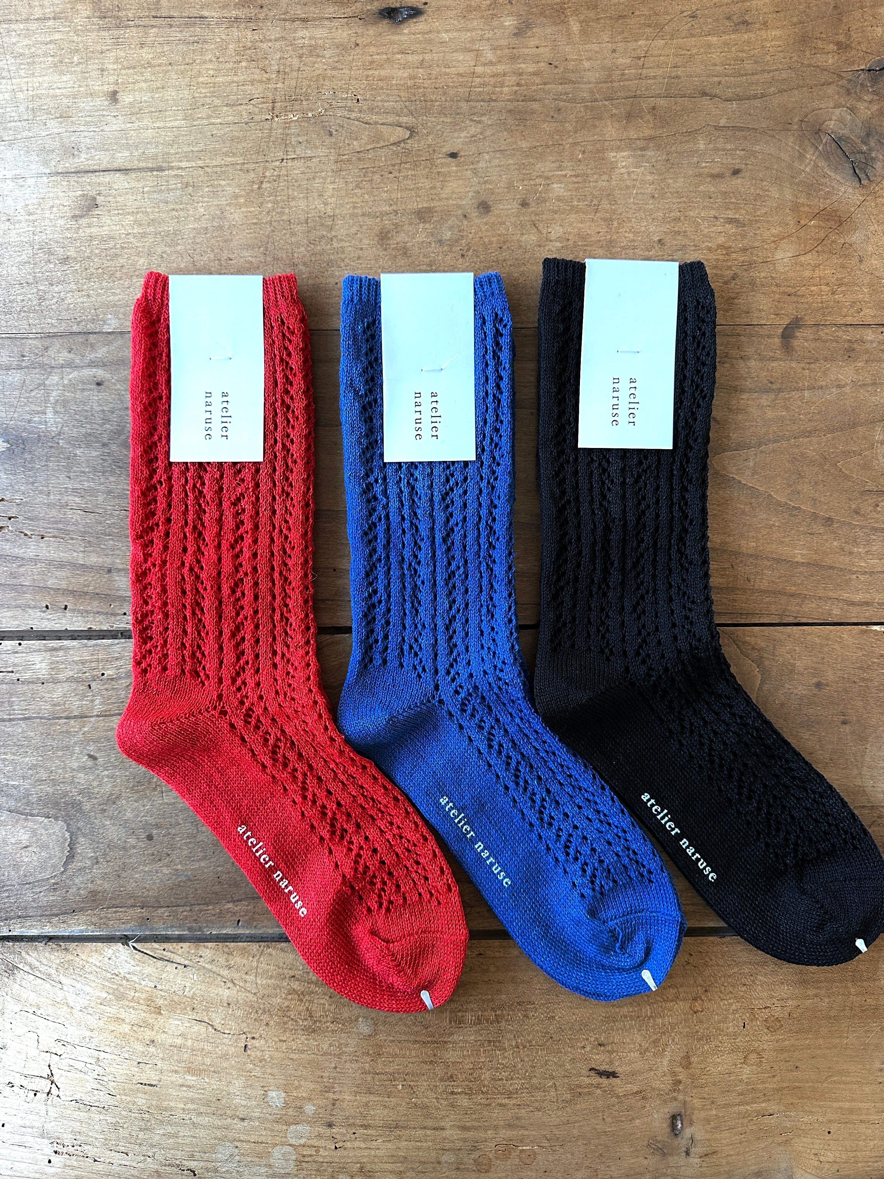 atelier naruse リネンストライプレースミドルソックス