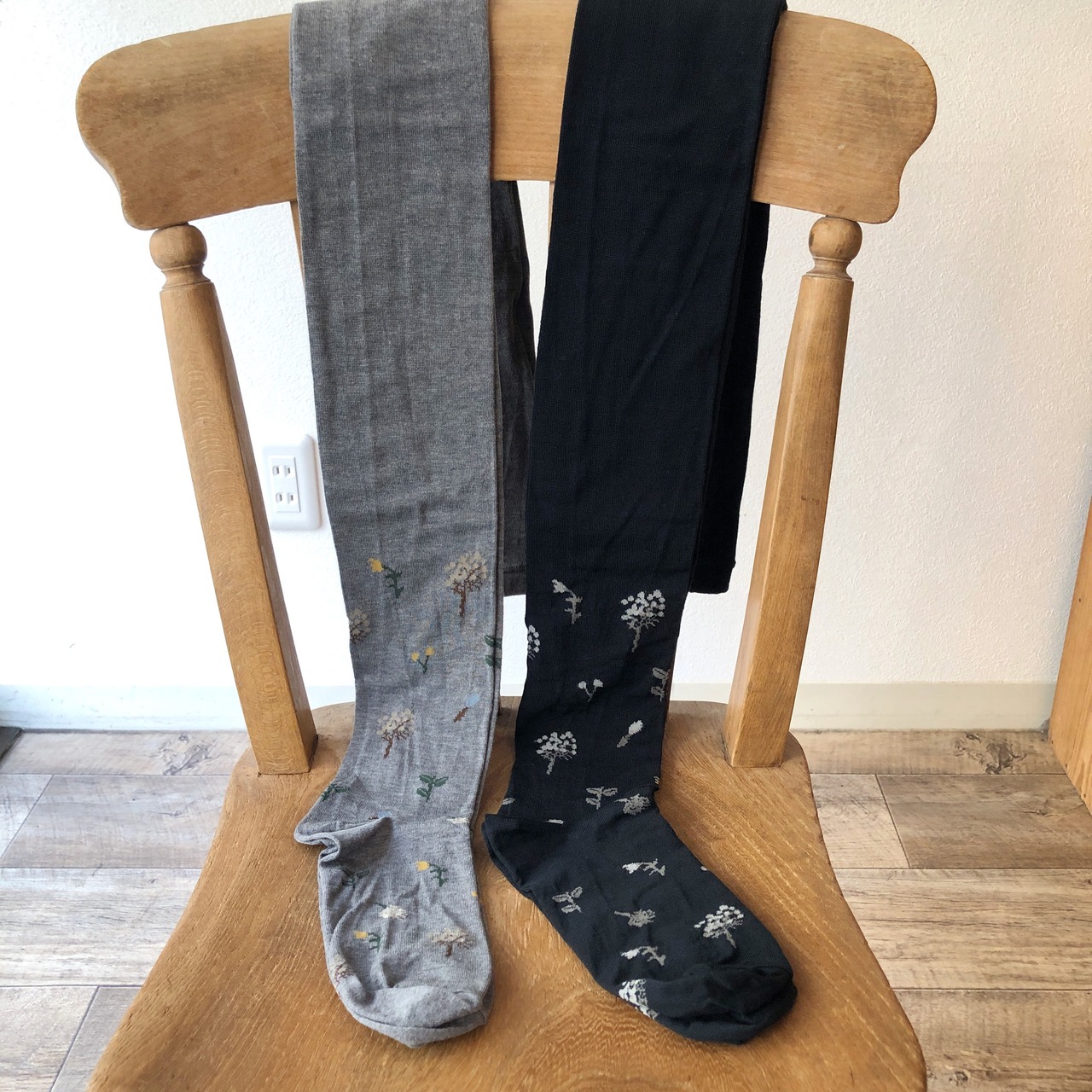 股下が長く、くしゅくしゅっと足首にゆとりを持たせて履くことのできる、atelier naruseオリジナルの【botanical】柄でつくった、ハイゲージのコットンタイツです。