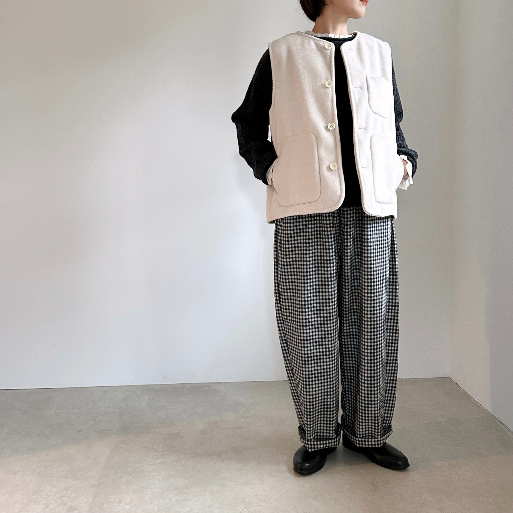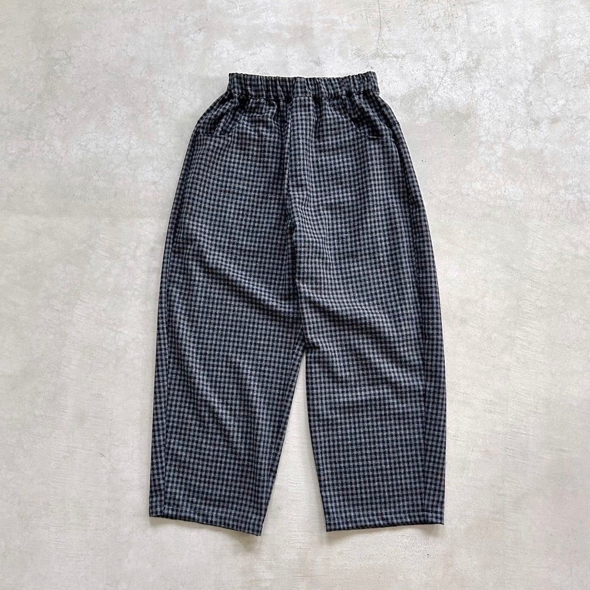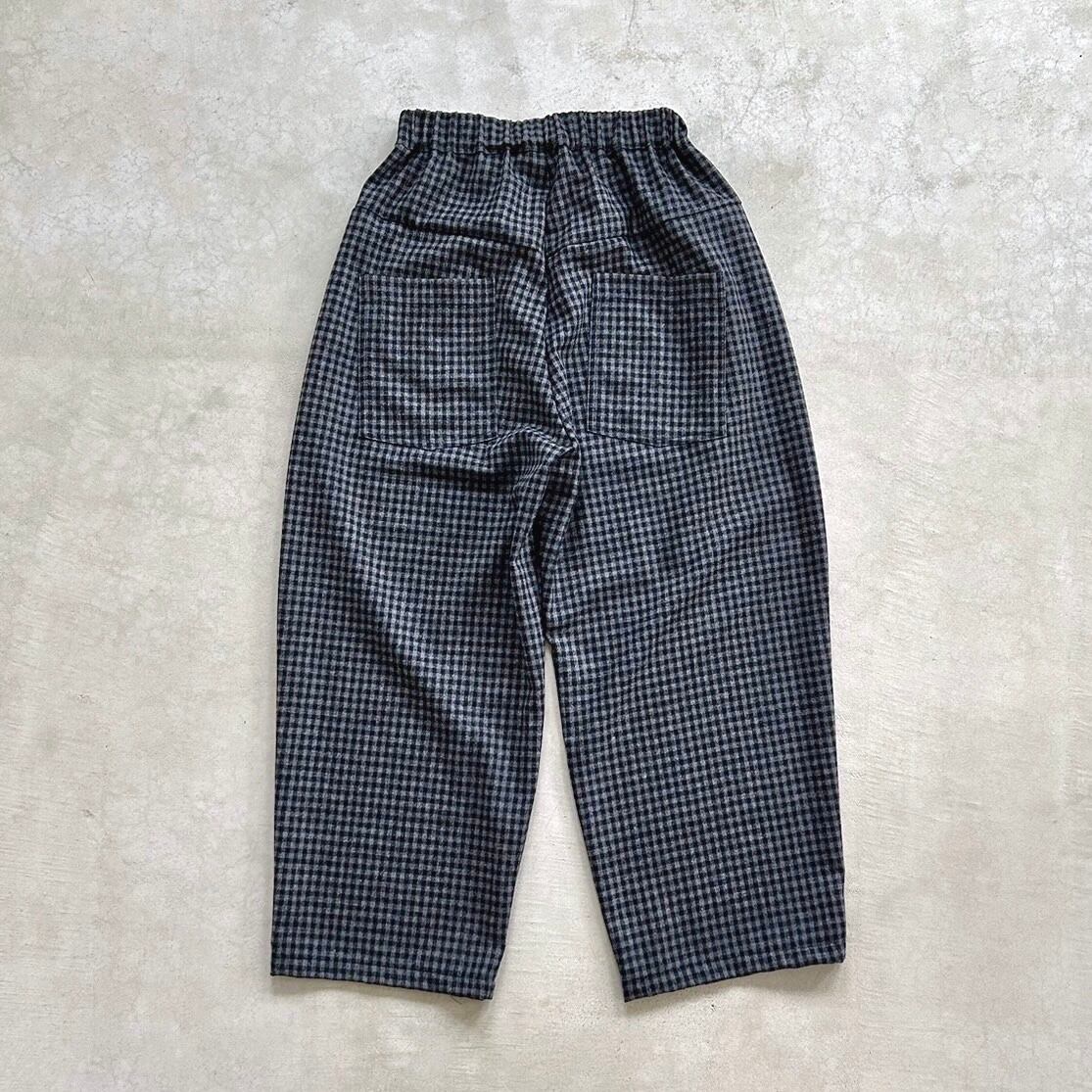 NARU ウールリサイクルクロスチェックノッポパンツ グレー×ネイビー